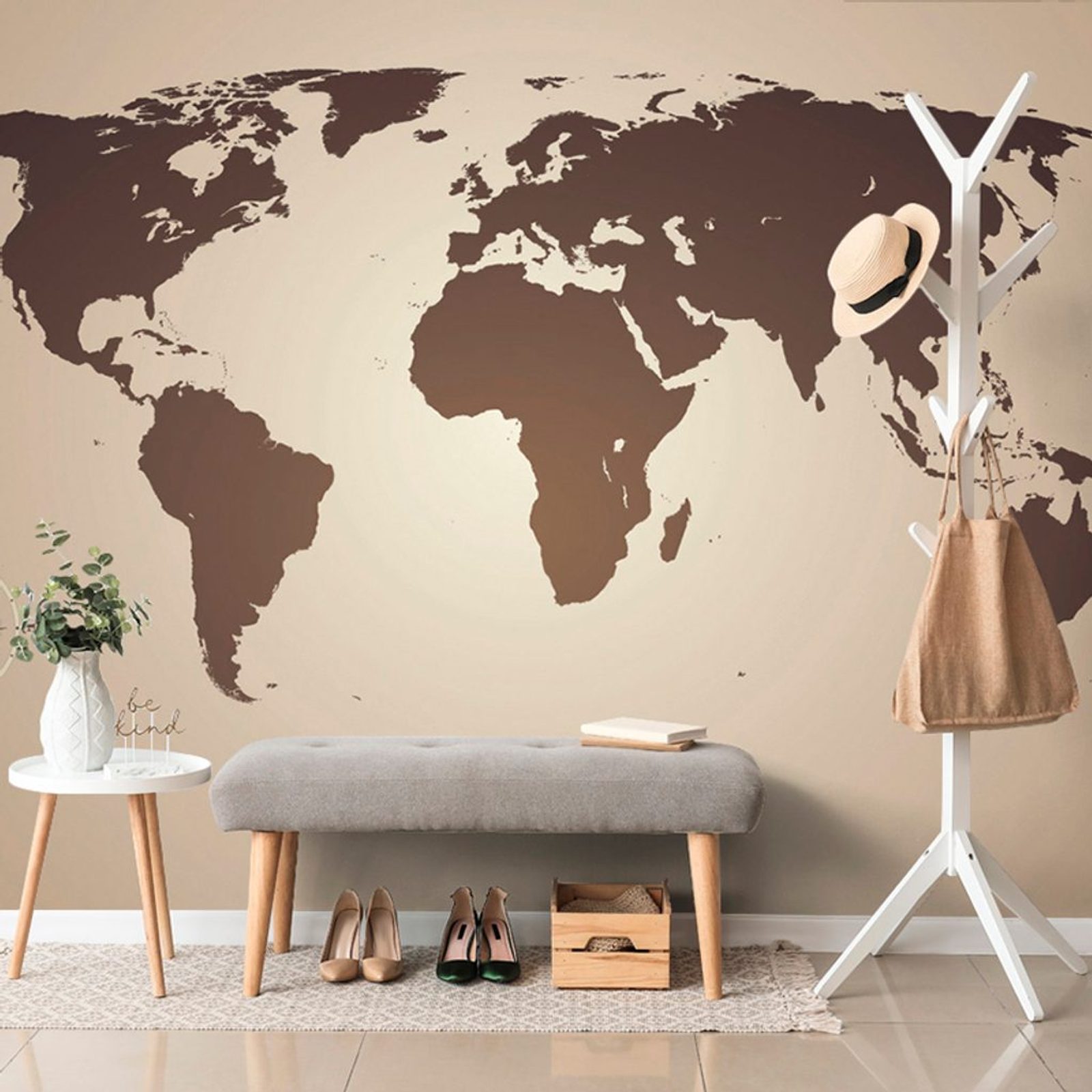 Samolepící tapeta moderní mapa světa v sépiovém provedení