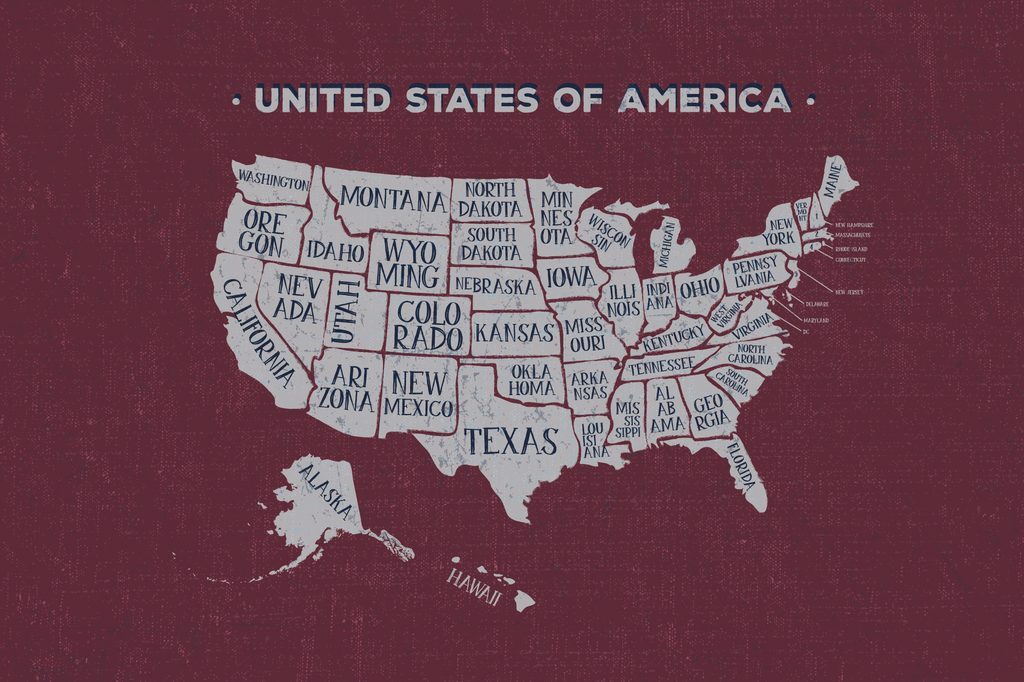 Samolepící tapeta moderní mapa USA s bordó pozadím