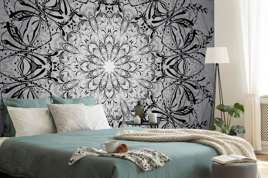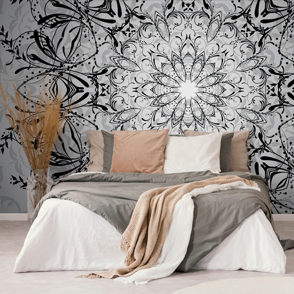 Samolepící tapeta černobílá Mandala v kouzelném provedení