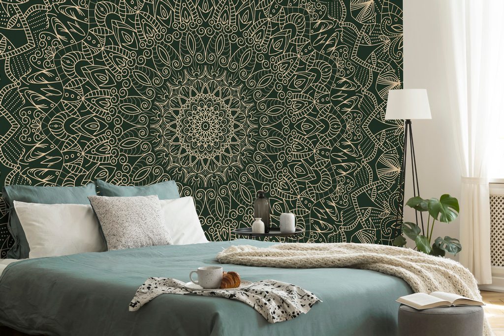 Samolepící tapeta nádherně propracovaná Mandala v zeleném provedení