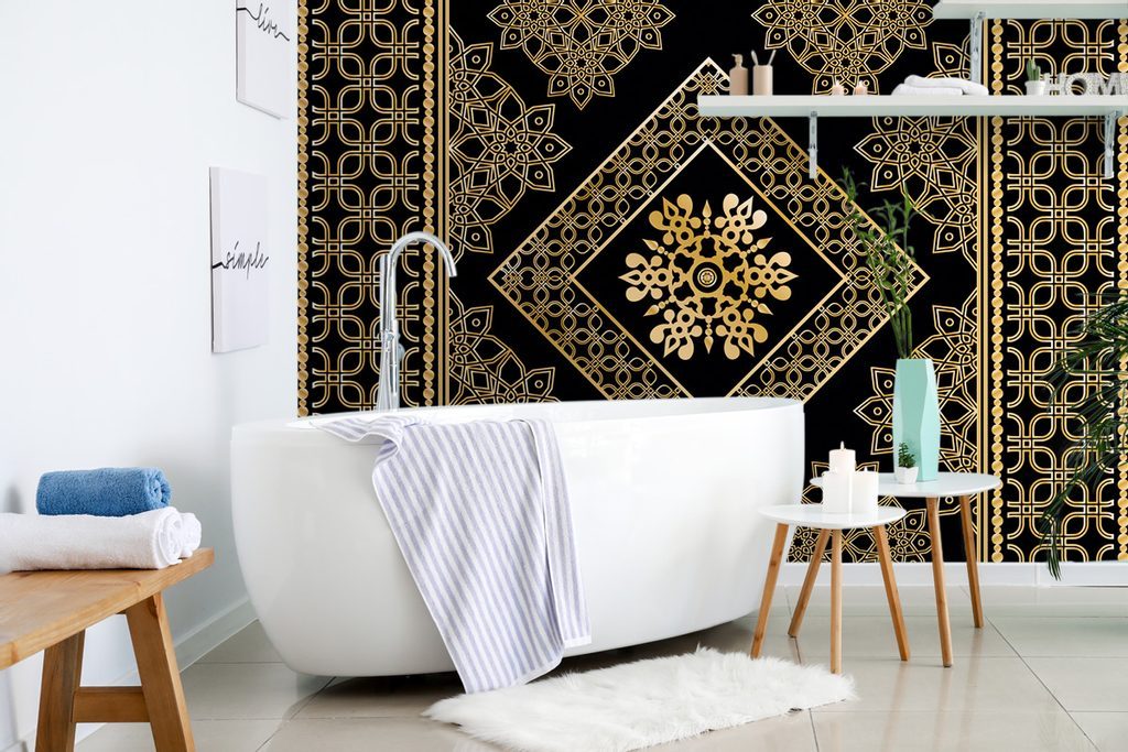 Samolepící tapeta nádherný zlatý ornament na černém pozadí