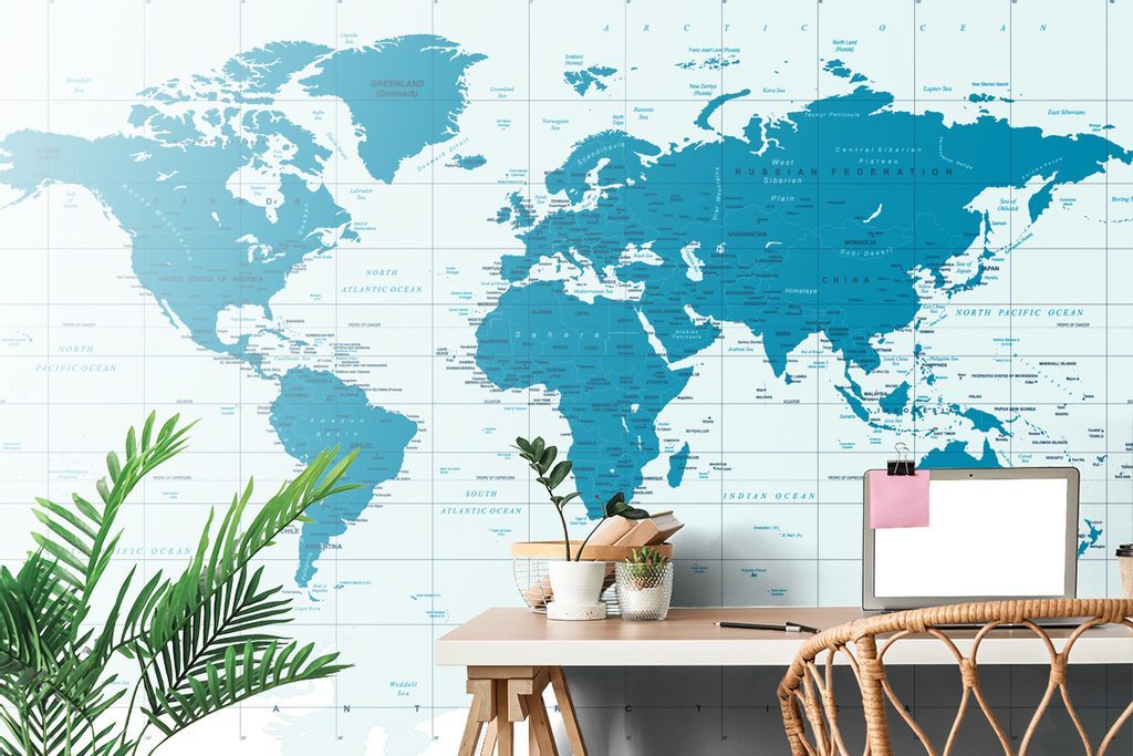 Samolepící tapeta moderní mapa světa na modrém pozadí