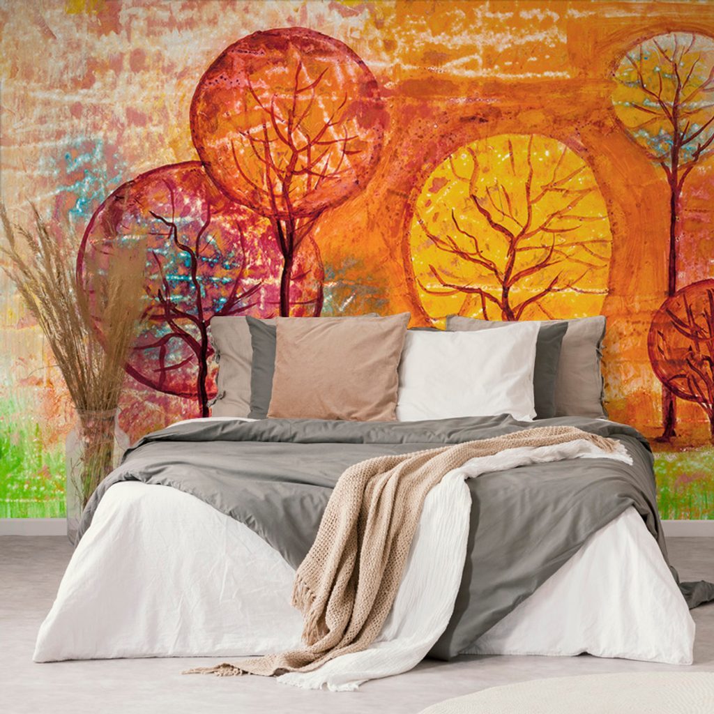 Samolepící tapeta neobvyklé stromy v odstínech oranžové