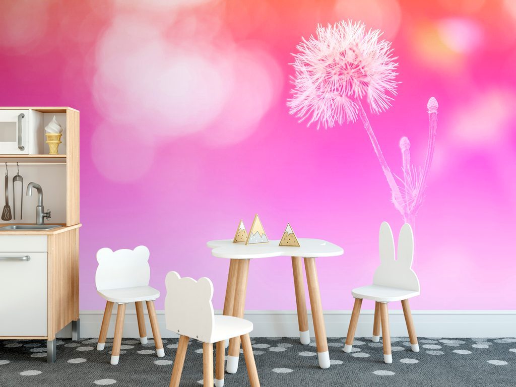 Samolepící tapeta pampeliška na abstraktním růžovém pozadí