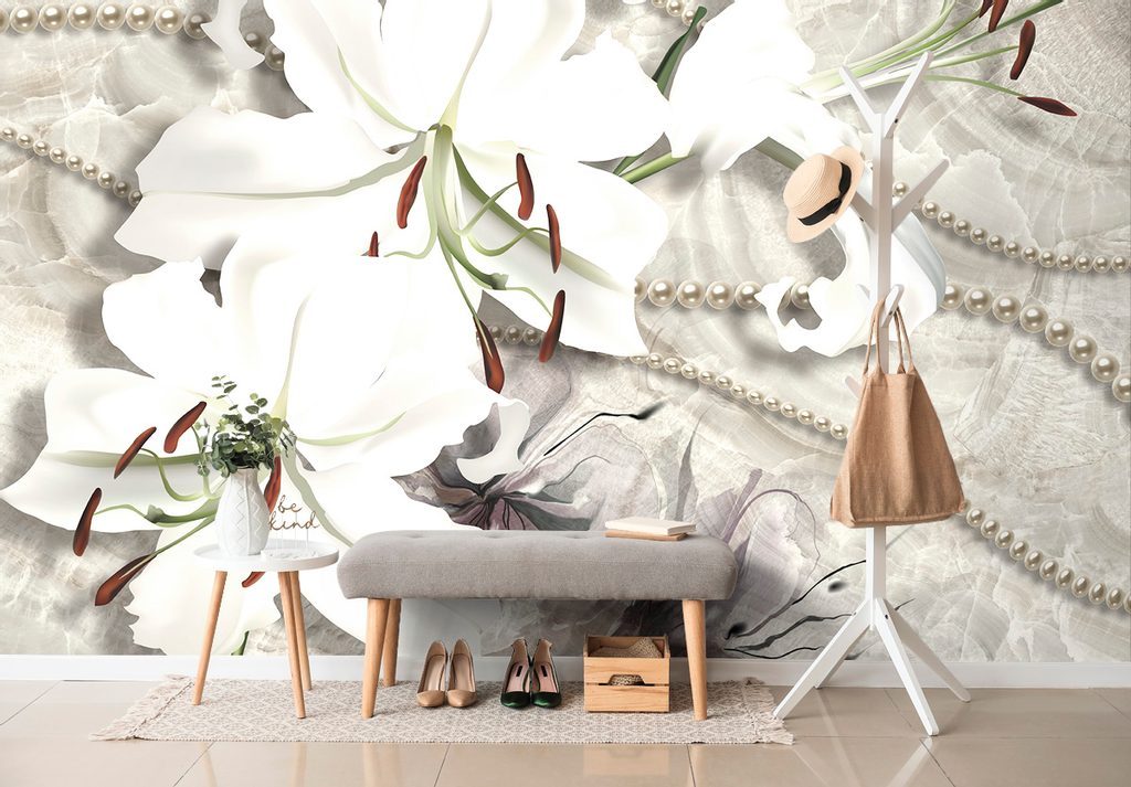 Samolepící tapeta perly s květinami lilie