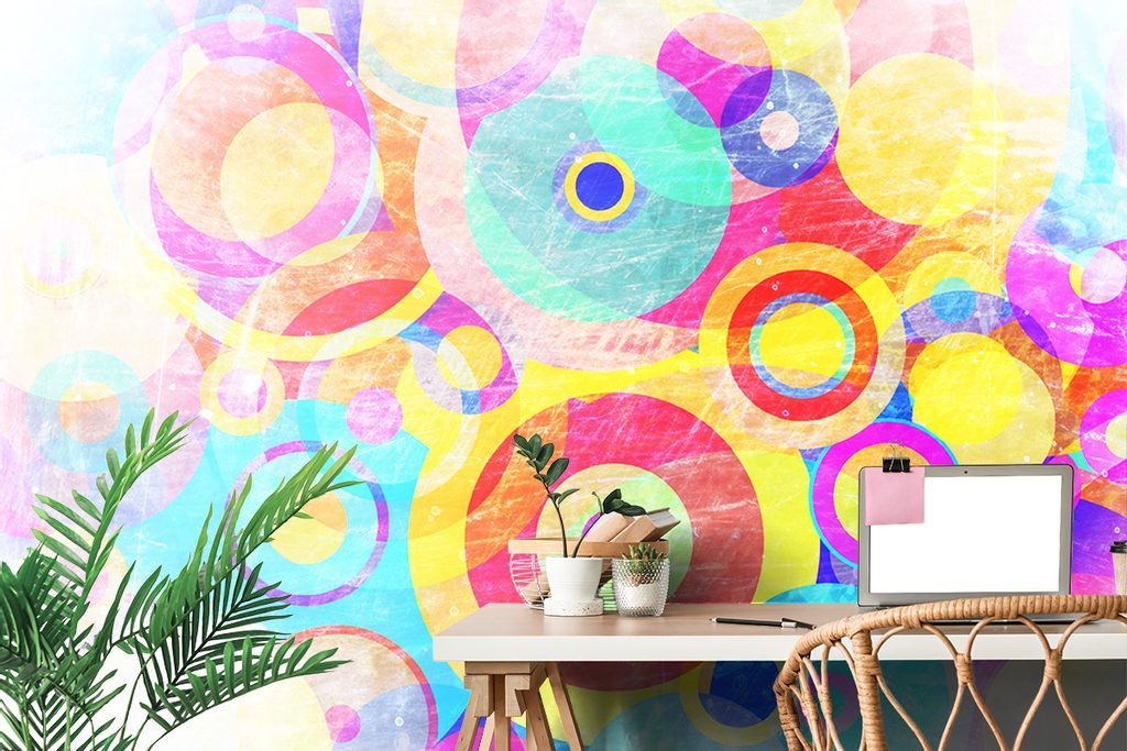 Samolepící tapeta pestrobarevné kruhy ve stylu grunge