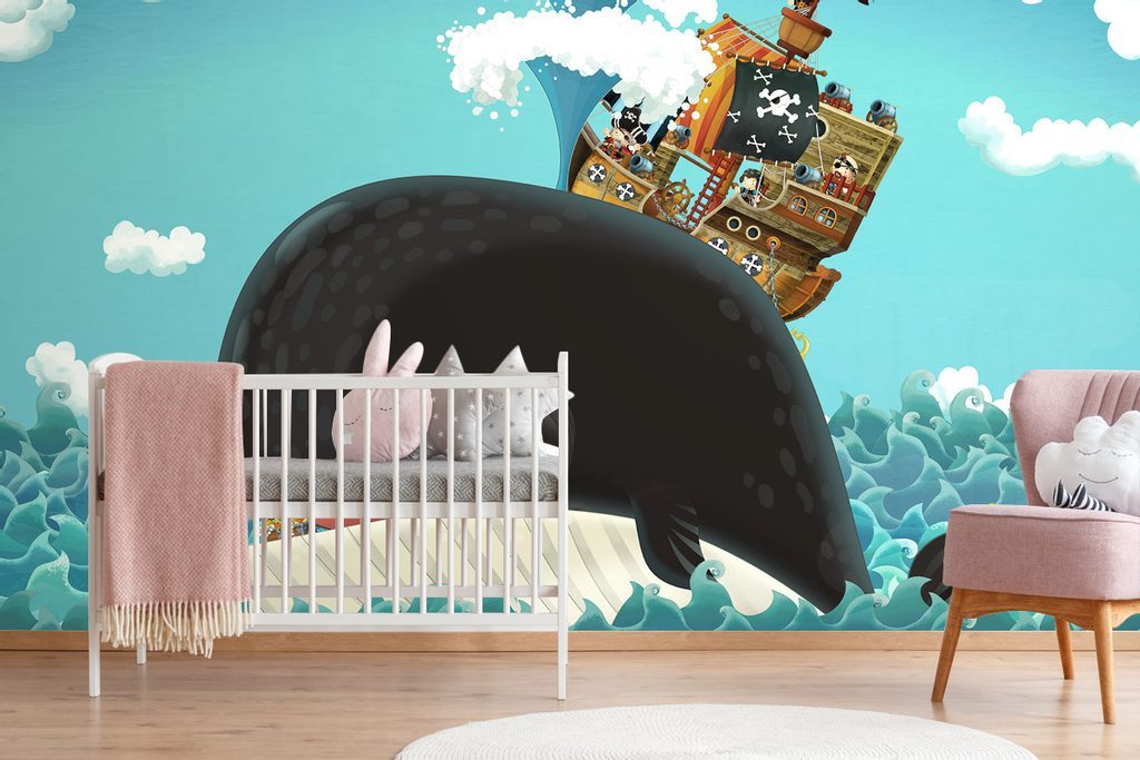 Samolepící tapeta plovoucí velryba s pirátskou lodí