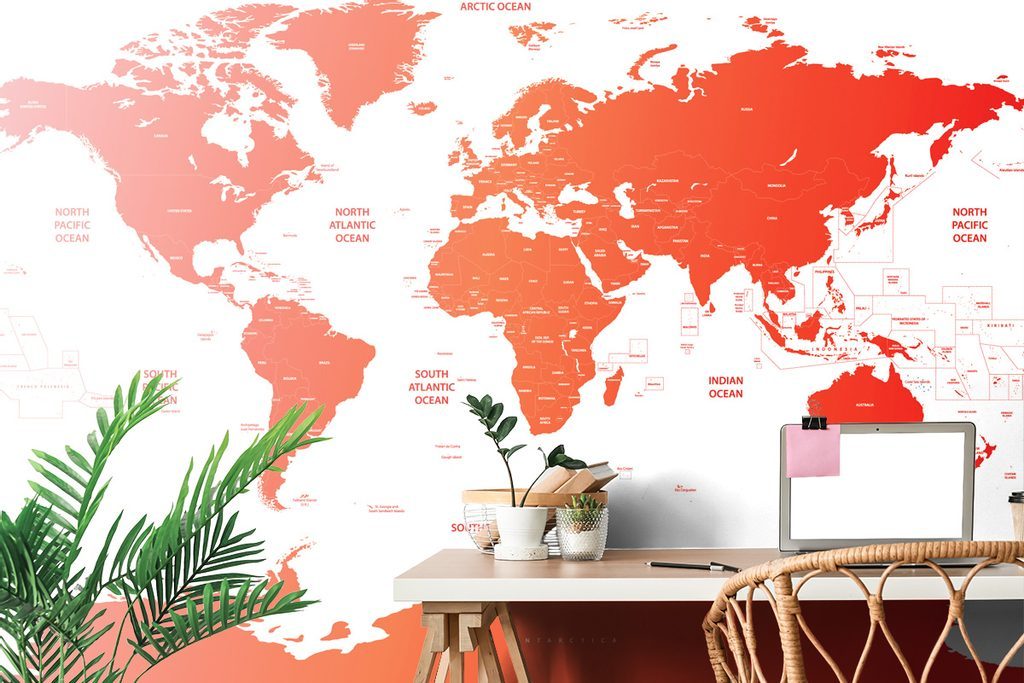 Samolepící tapeta podrobná mapa světa v červené barvě