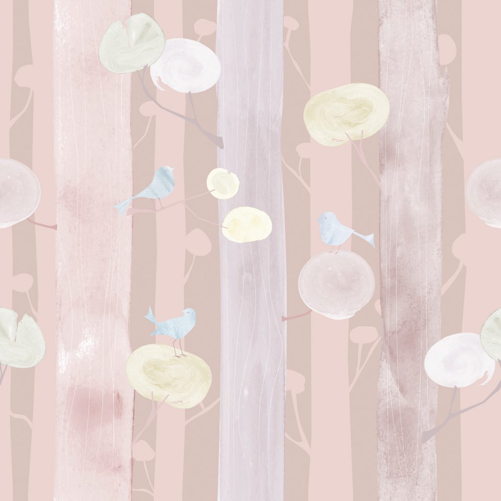 Samolepící tapeta ptáčci na větvích na růžovém pozadí