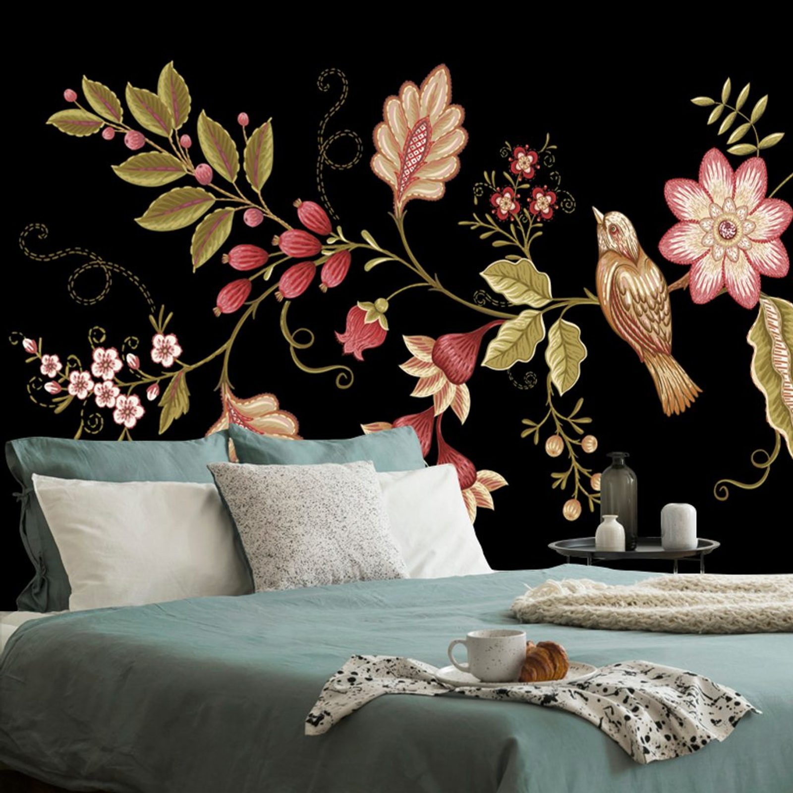 Samolepící tapeta ptáček na větvičce v lidovém provedení