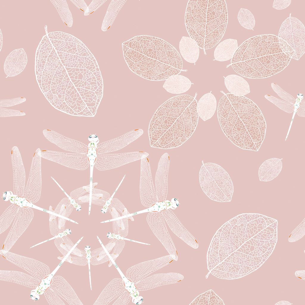 Samolepící tapeta půvabné vážky na růžovém pozadí