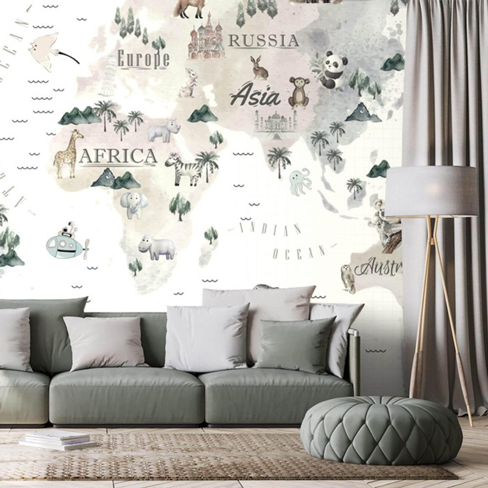 Samolepící tapeta rozkošná mapa se zvířátky
