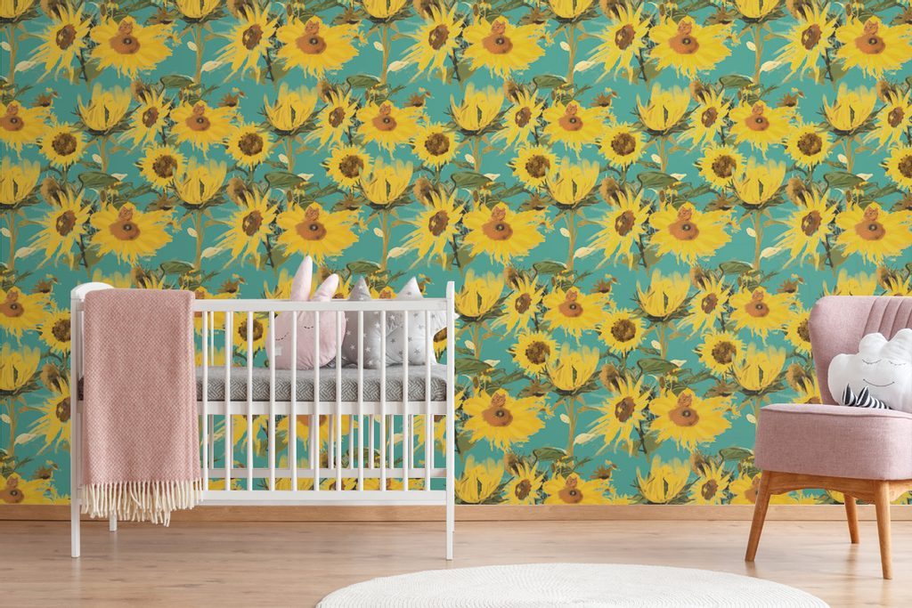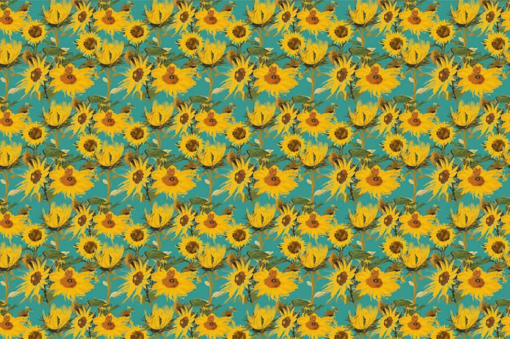 Samolepící tapeta rozkvetlé slunečnice na modrém pozadí