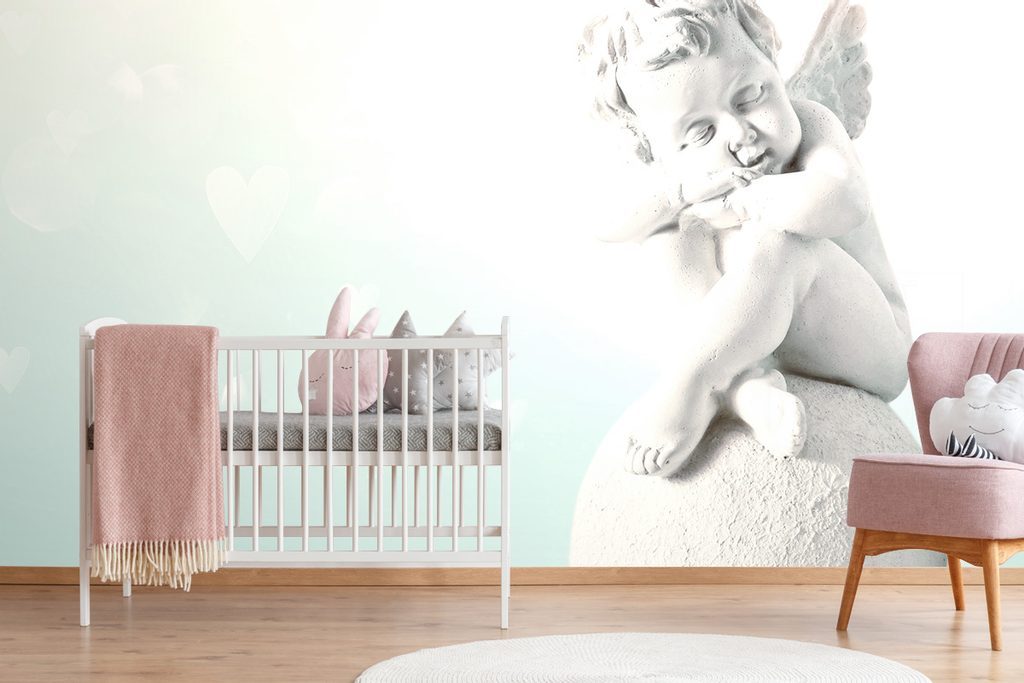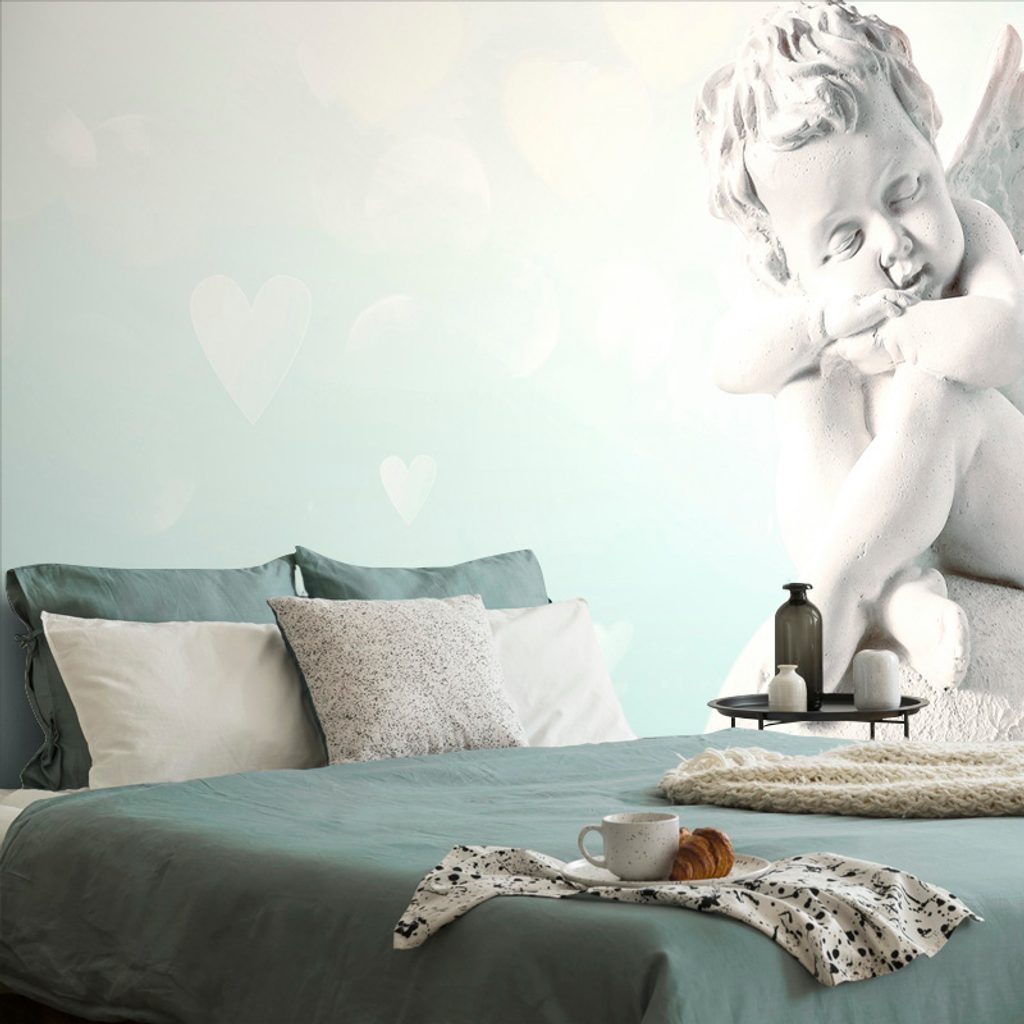 Zajímavá černobílá samolepící tapeta fascinující oblak anděla