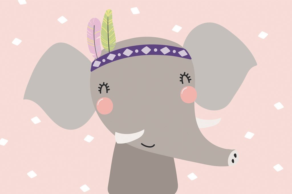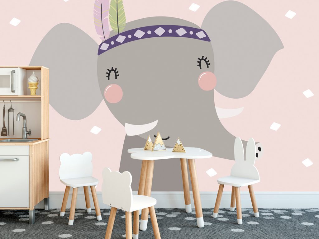 Samolepící tapeta šťastný sloník s pírkovou čelenkou