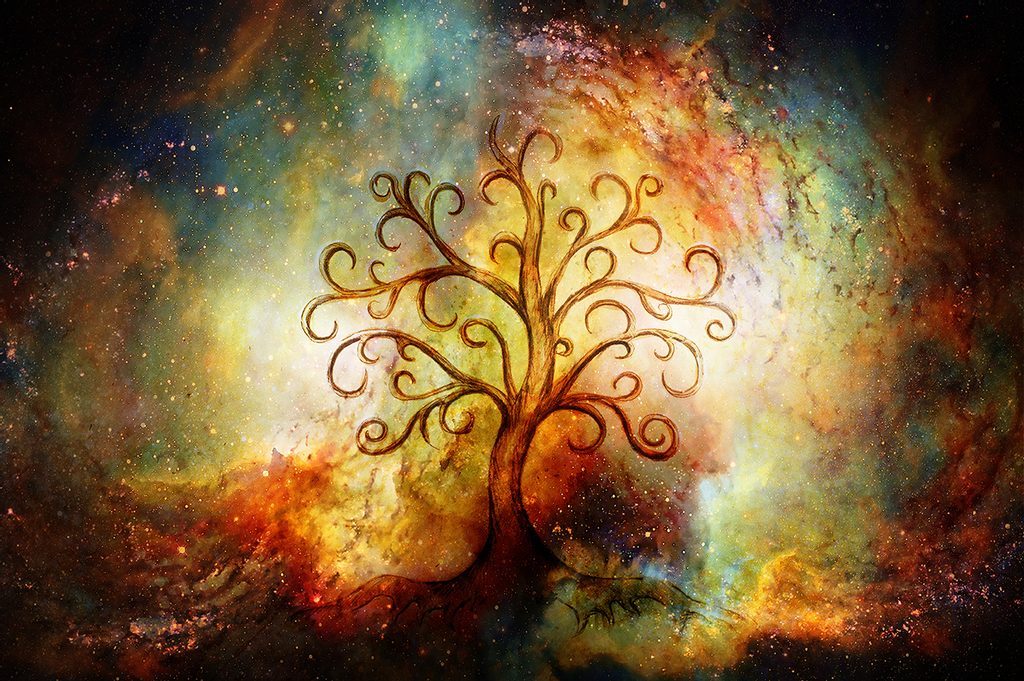 Samolepící tapeta strom života na abstraktním vesmírném pozadí