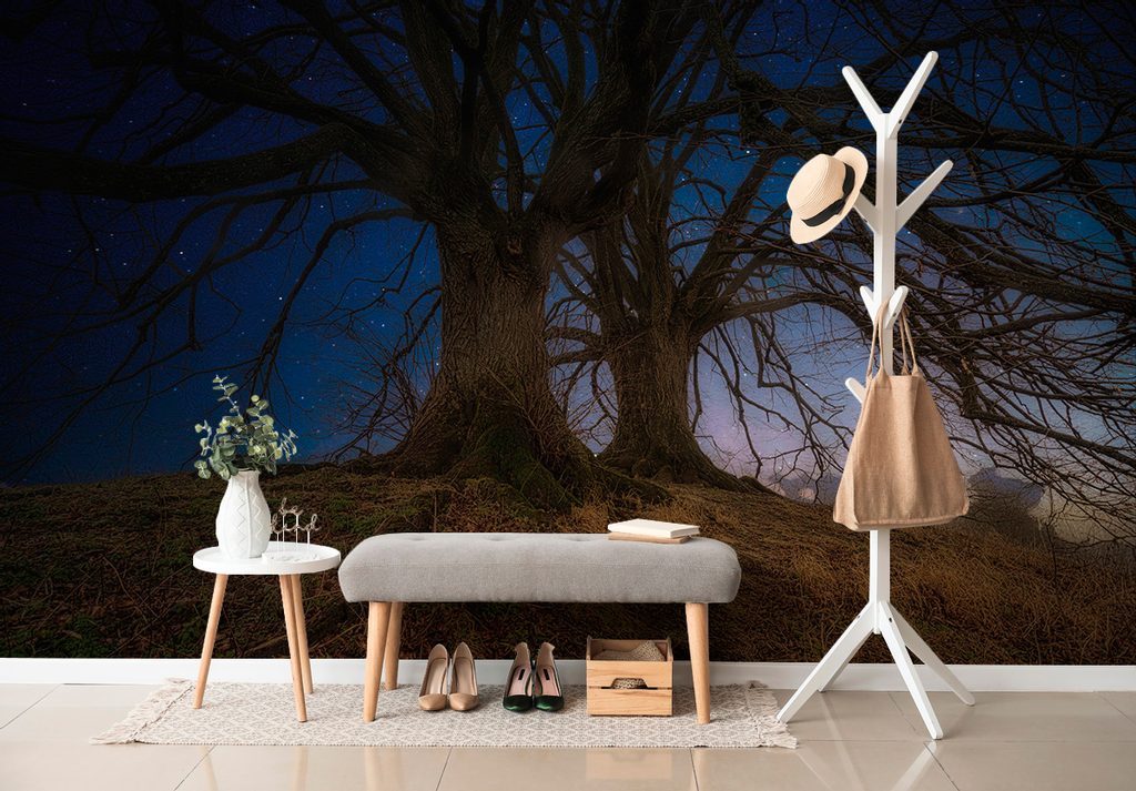 Samolepící tapeta stromy s noční oblohou