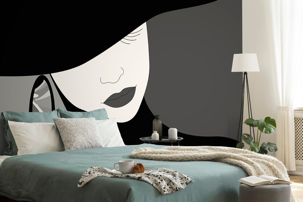 Samolepící tapeta tajemná žena v klobouku v černobílém provedení