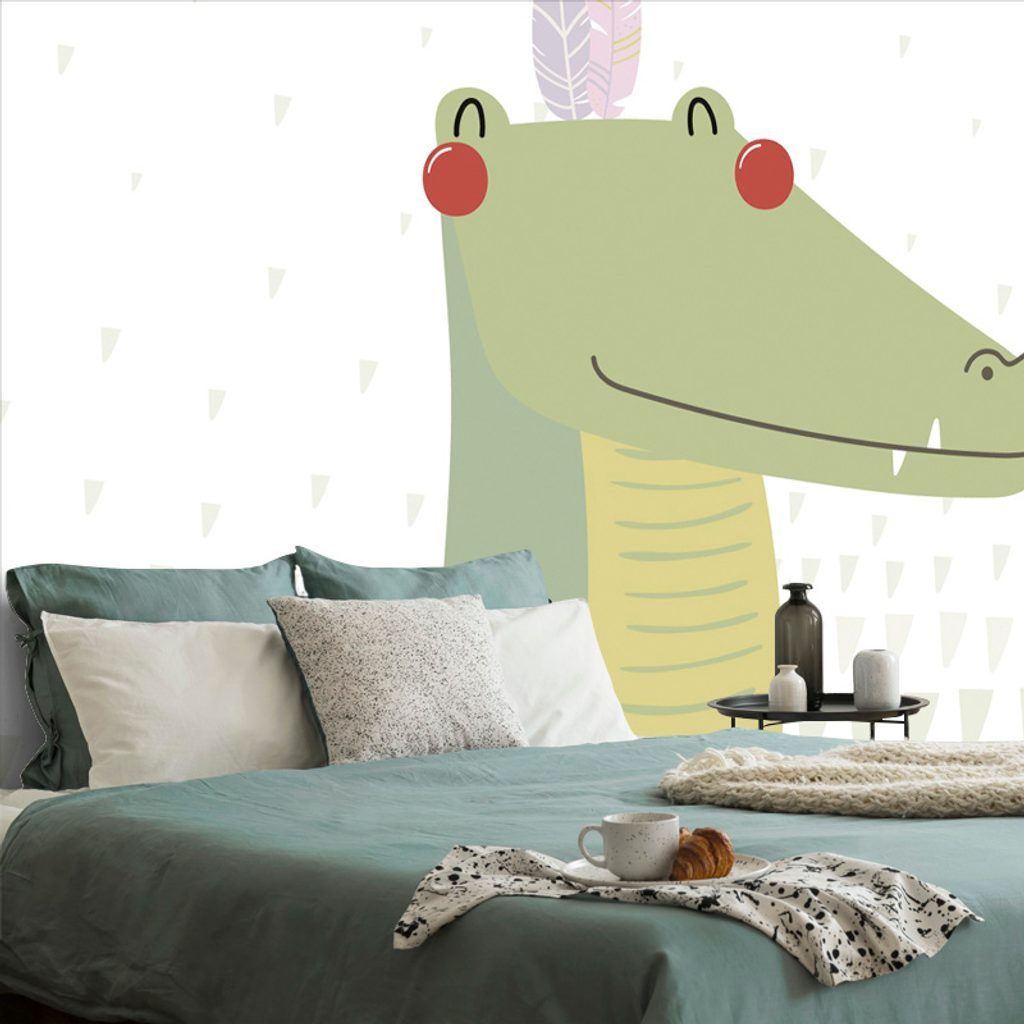 Samolepící tapeta usměvavý krokodýl s indiánskými peříčky