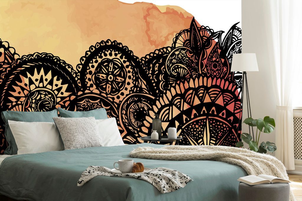 Samolepící tapeta zajímavá oranžová Mandala