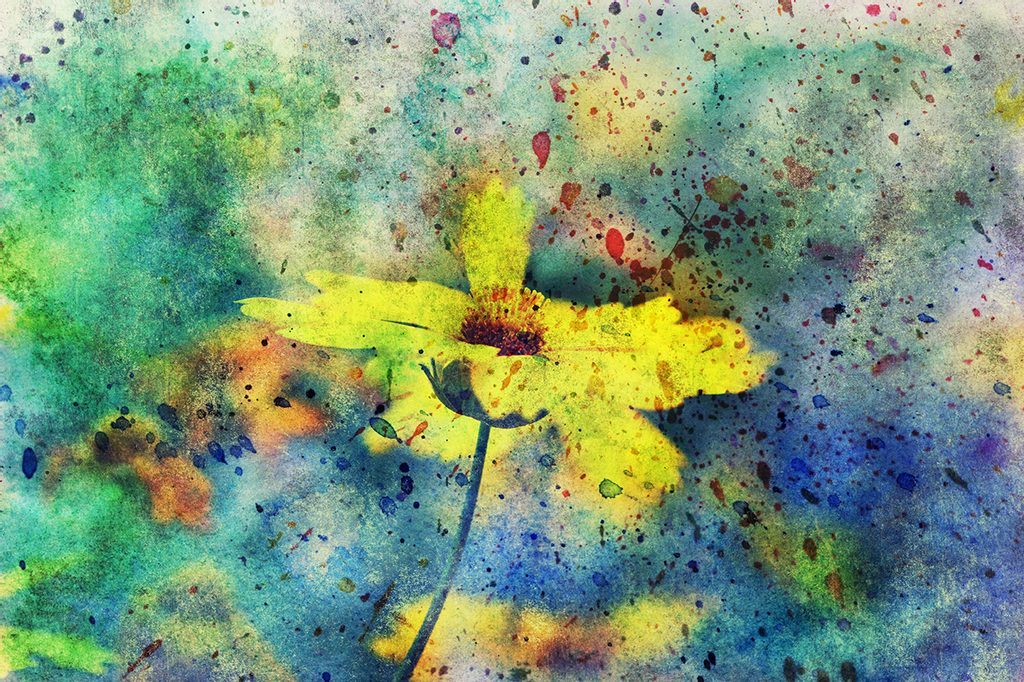 Samolepící tapeta žlutý květ na abstraktním pozadí