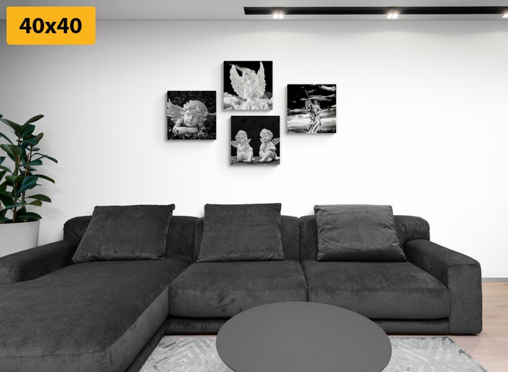 Set obrazů anděle v černobílém provedení