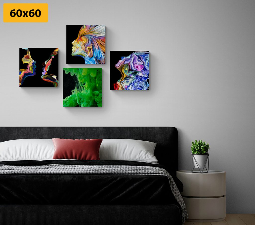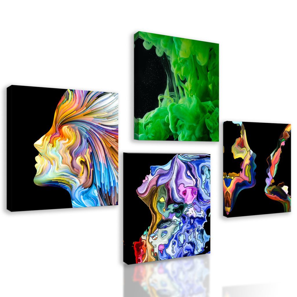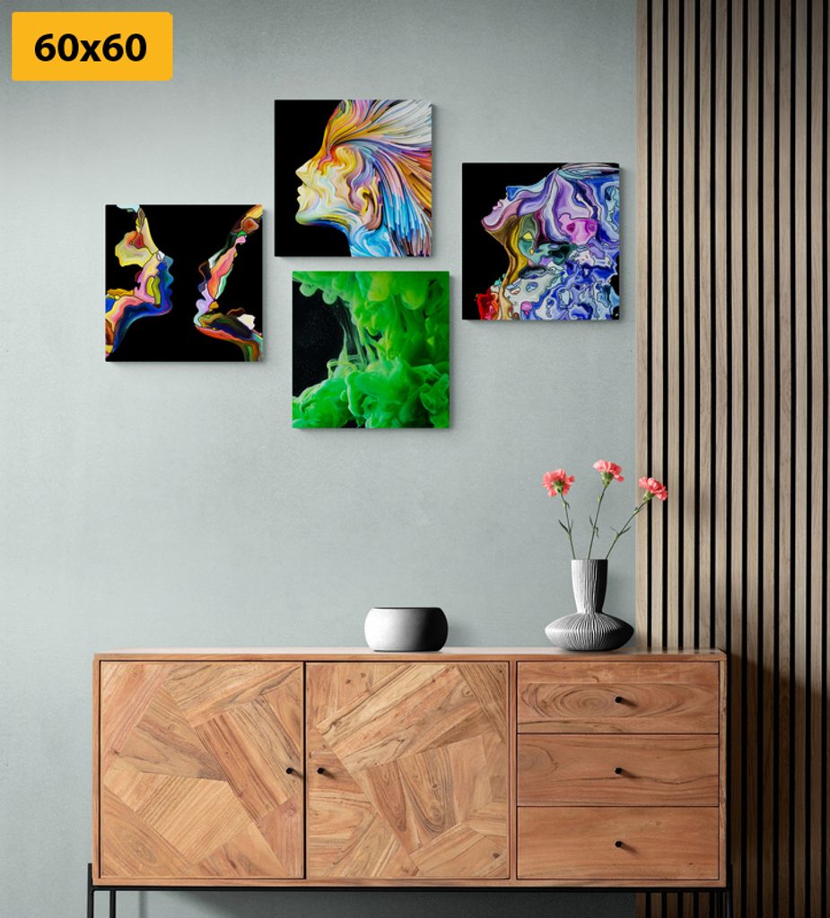 Výhody USP sety Čtyři obrazy laděné do podobných motivů a barev, Snadná instalace, Možnost umístění dle vlastních představ, Prémiové plátno 280 g/m²