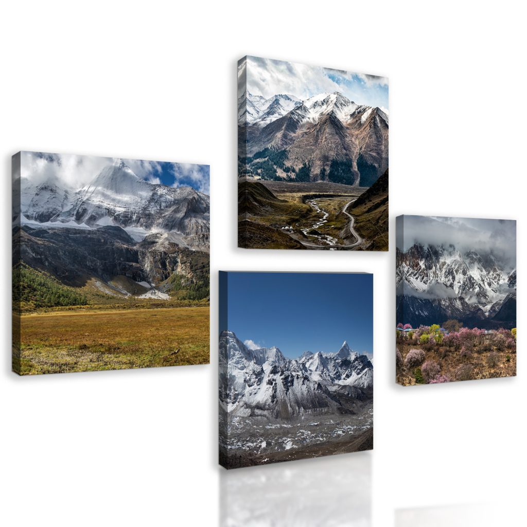 Výhody USP sety Čtyři obrazy laděné do podobných motivů a barev, Snadná instalace, Možnost umístění dle vlastních představ, Prémiové plátno 280 g/m²