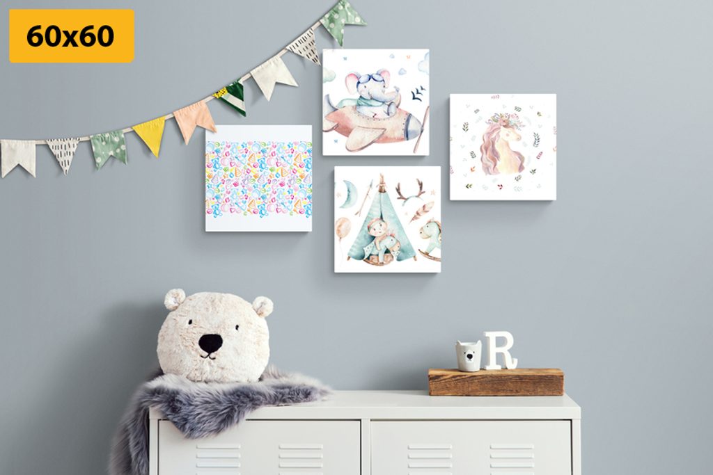 Set obrazů pro nejmenší v jemných barvách