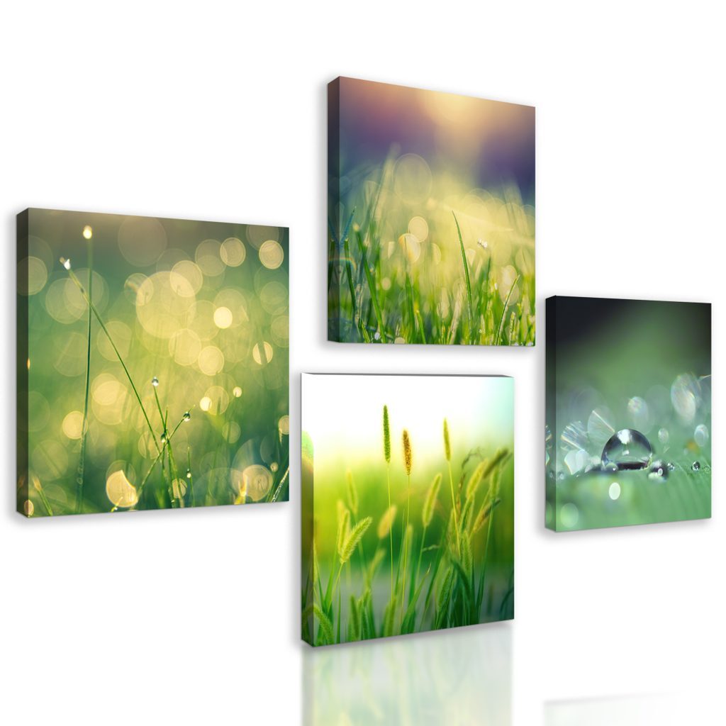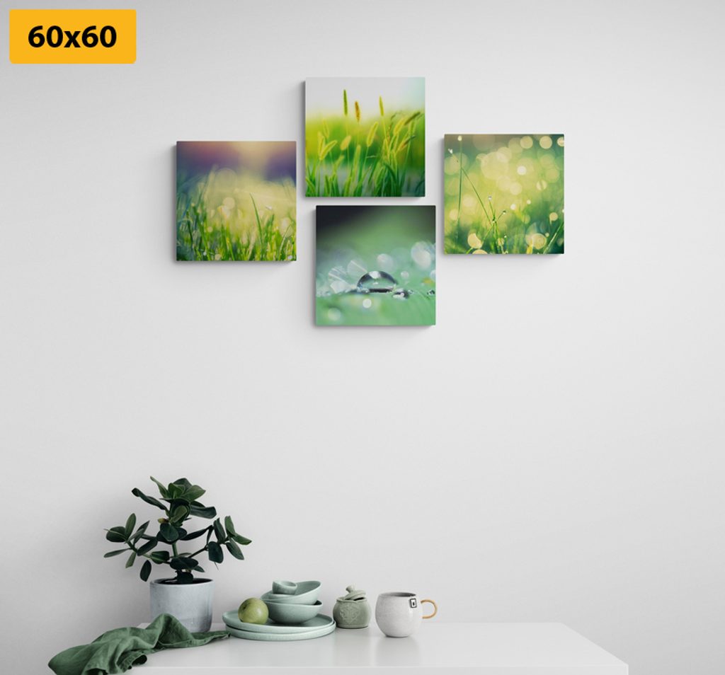 Výhody USP sety Čtyři obrazy laděné do podobných motivů a barev, Snadná instalace, Možnost umístění dle vlastních představ, Prémiové plátno 280 g/m²