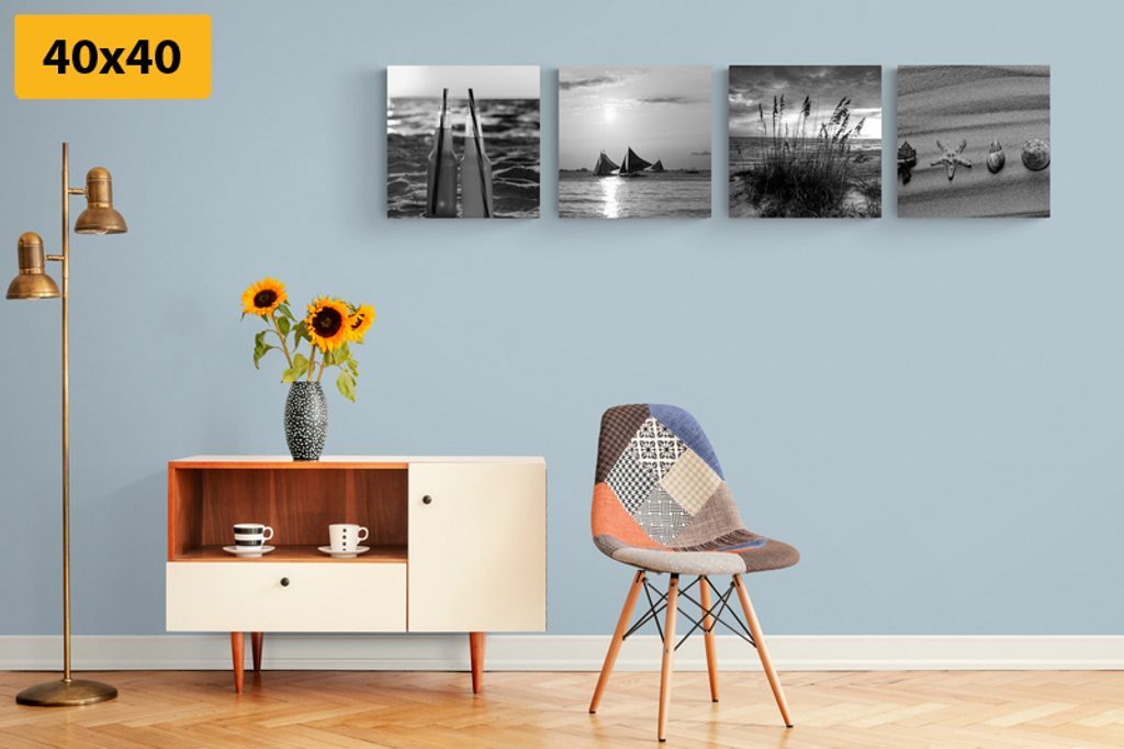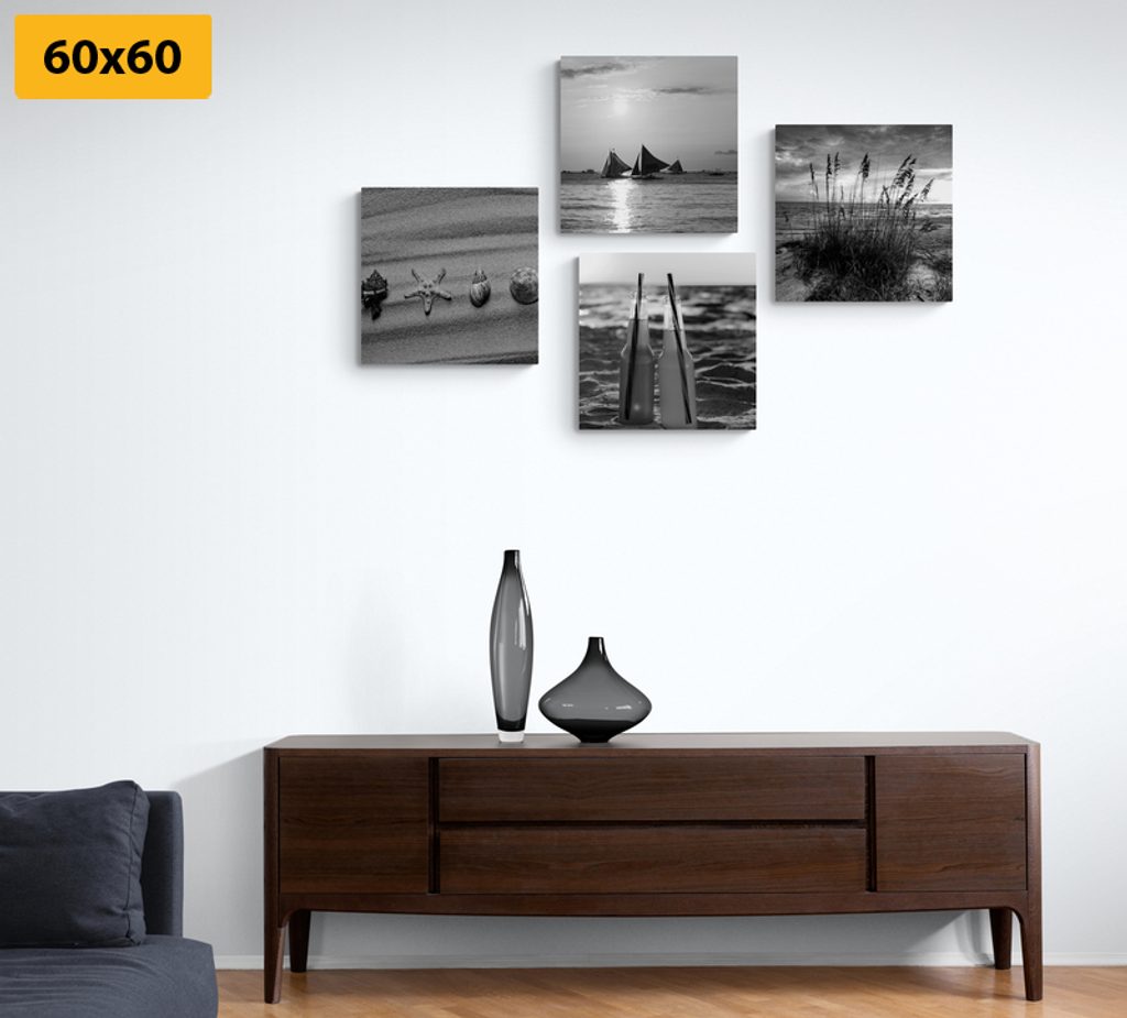 Set obrazů písečná pláž v černobílém provedení