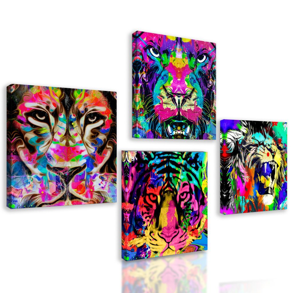 Set obrazů pop art hlavy zvířat