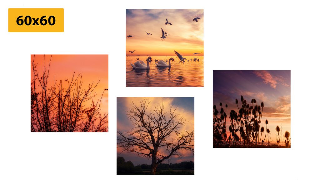 Set obrazů romantický západ slunce