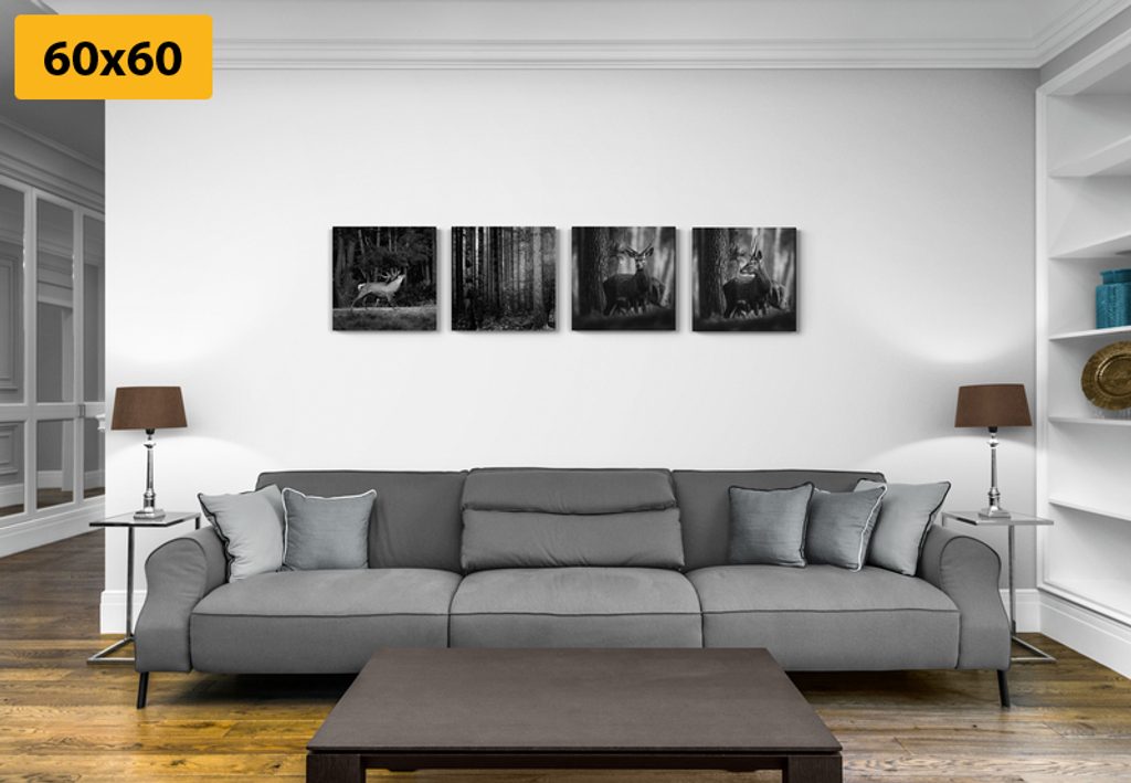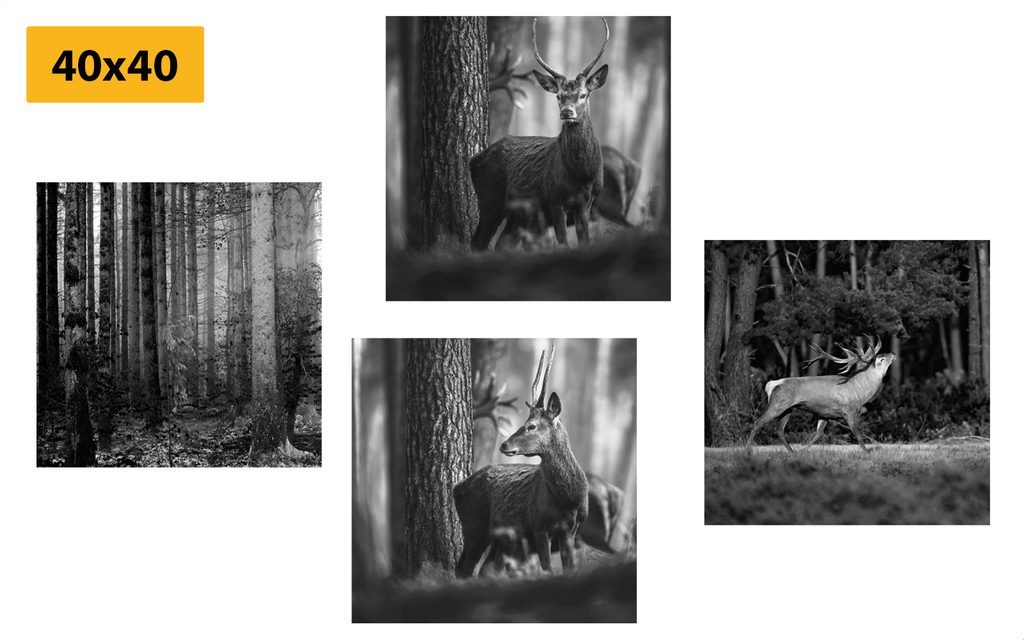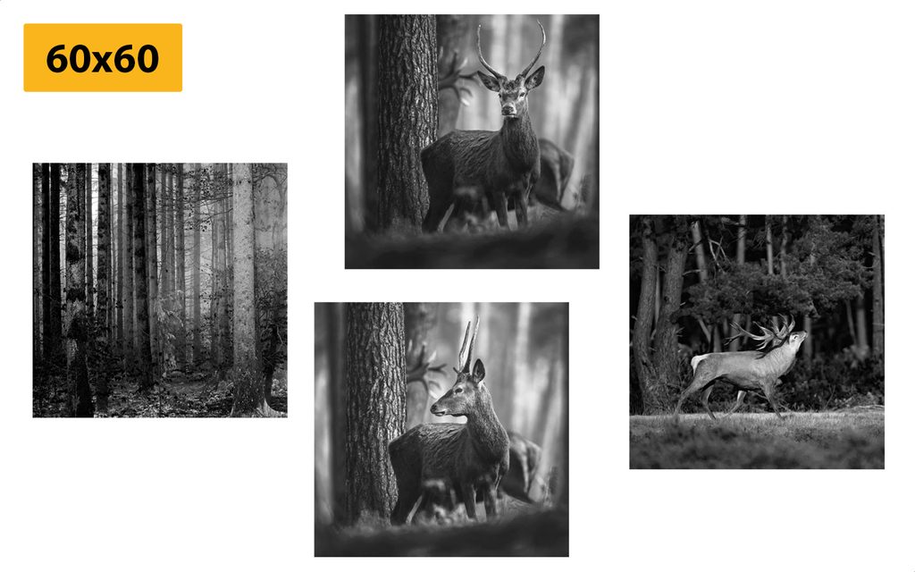 Set obrazů vysoká zvěř v černobílém provedení