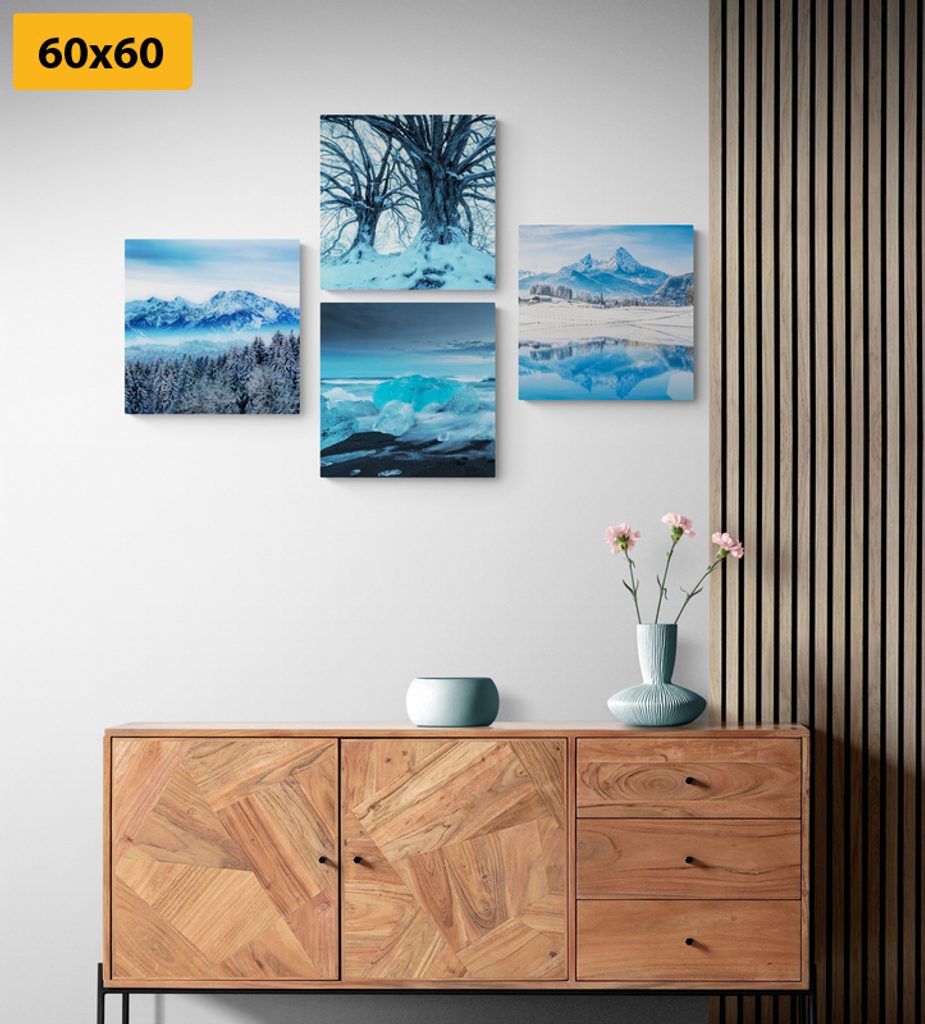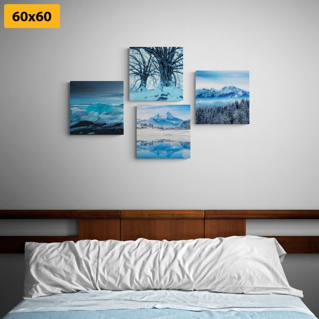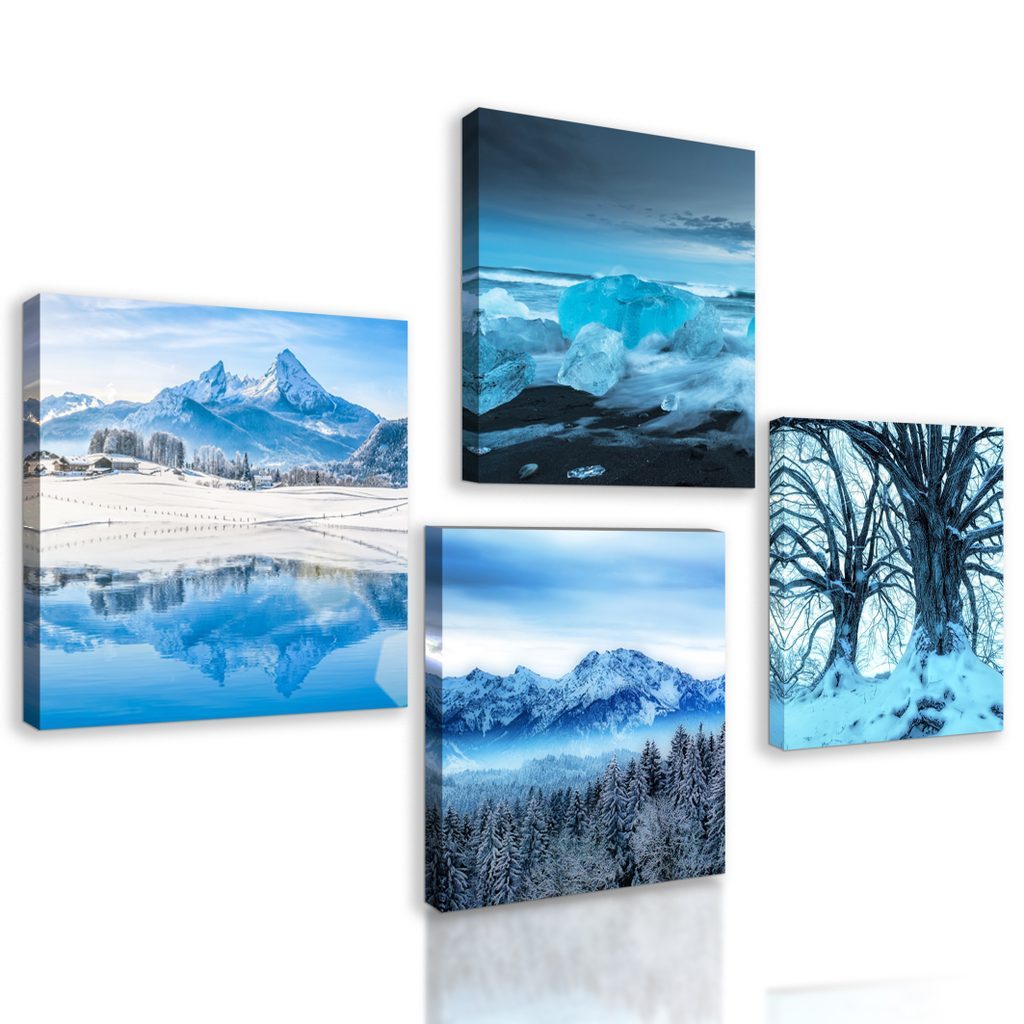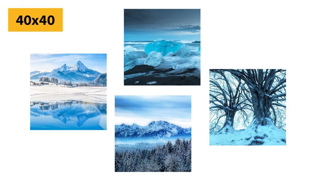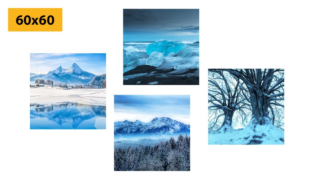 Set obrazů zasněžená příroda