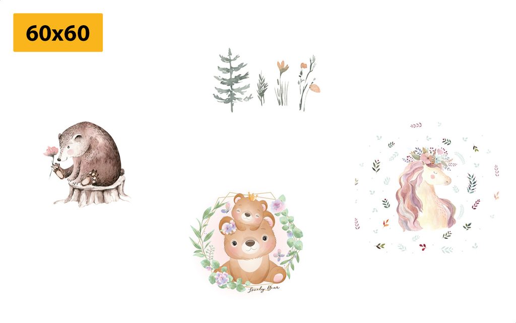 Set obrazů zvířátka v něžném provedení