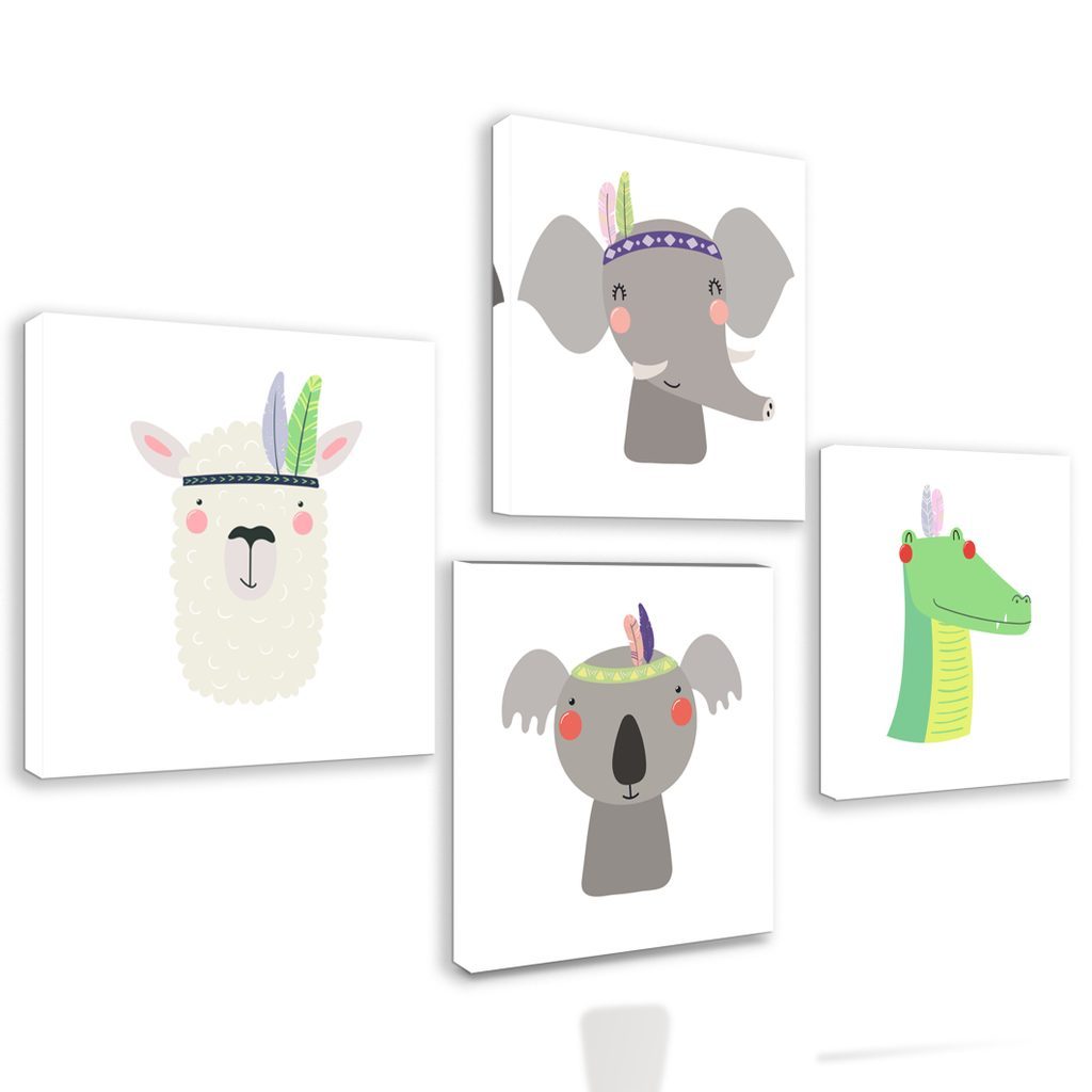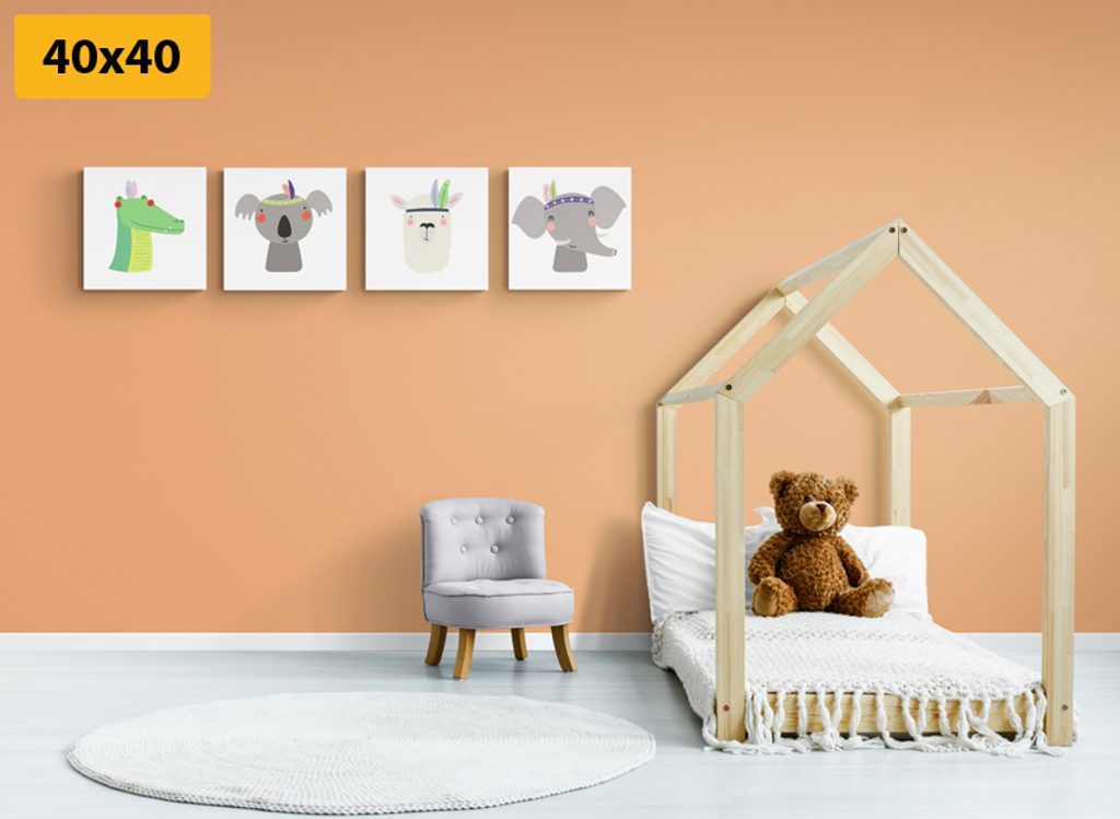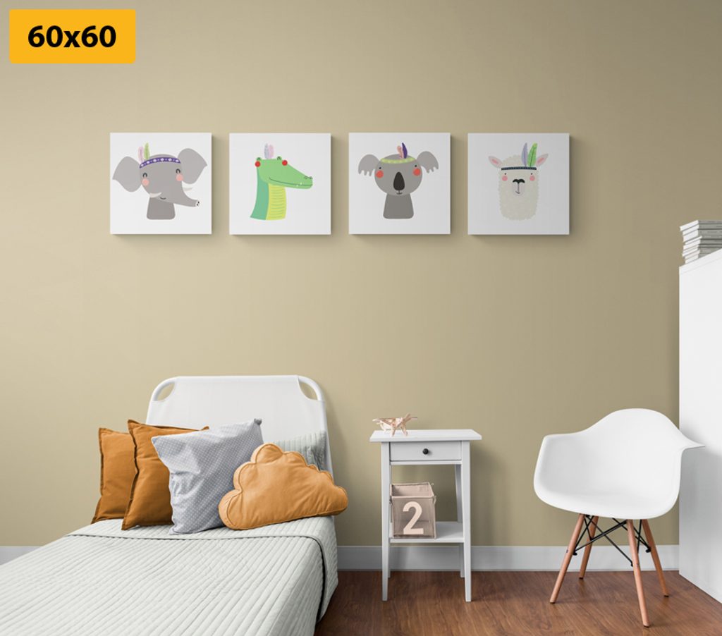 Set obrazů zvířecí kamarádi s indiánskými čelenkami