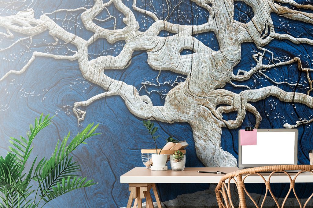 Tapeta abstraktní malovaný strom s modrým detailem