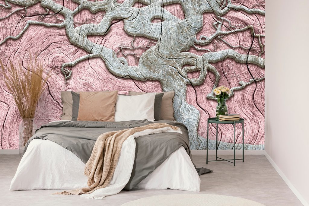 Tapeta abstraktní malovaný strom s růžovým detailem