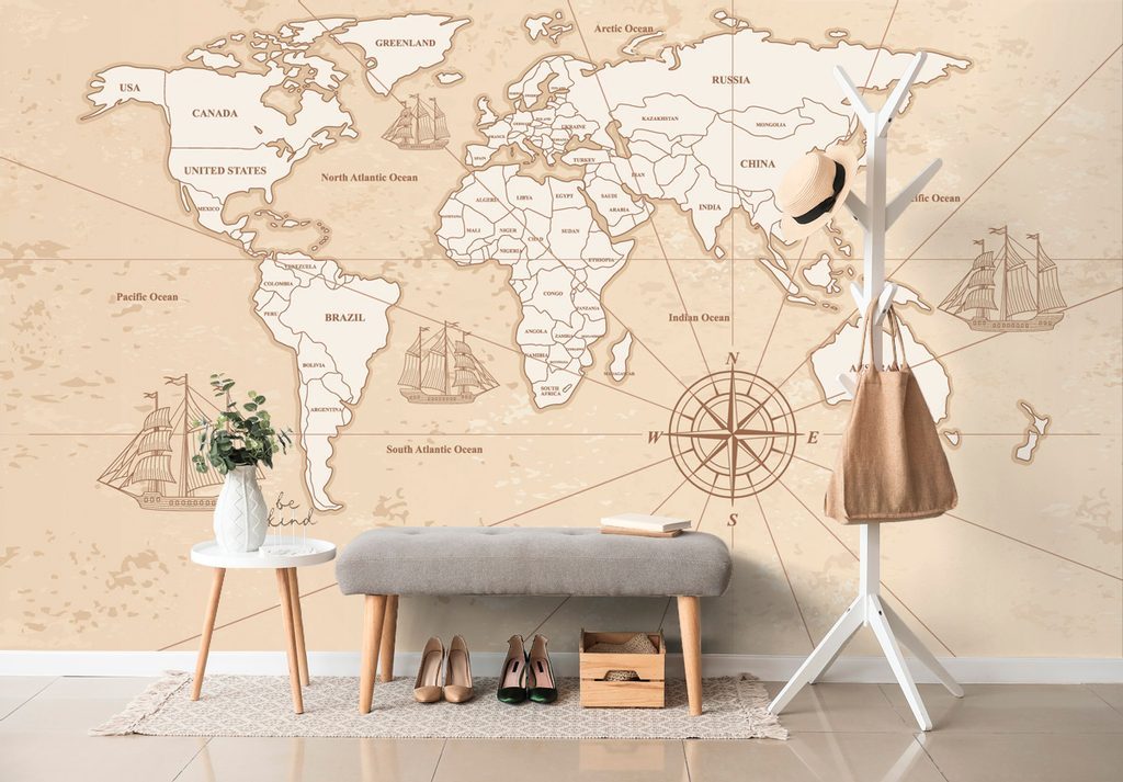 Tapeta mapa světa s historickým nádechem v béžovém provedení