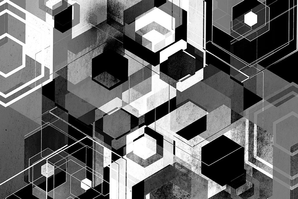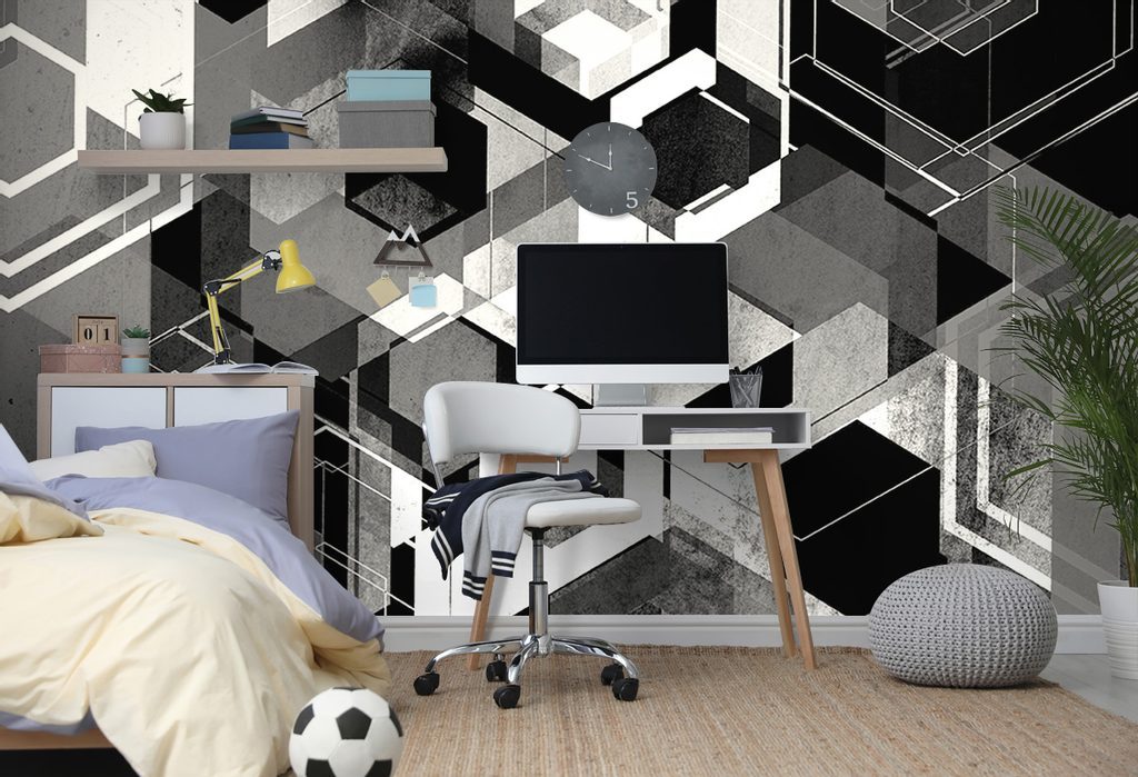Tapeta neobvyklý prostor s kuličkami v černobílém provedení