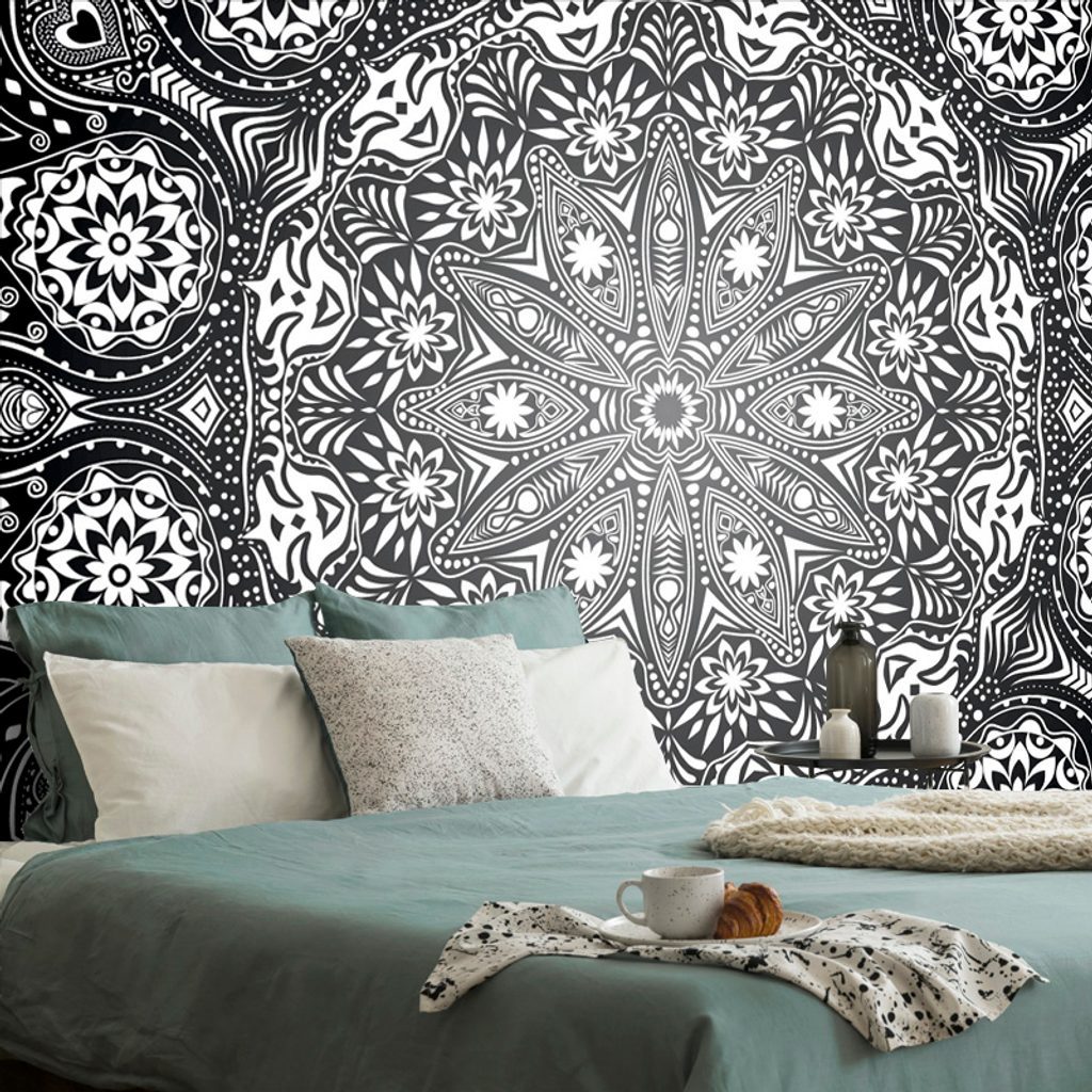 Samolepící tapeta moderní Mandala v černo-růžovém provedení