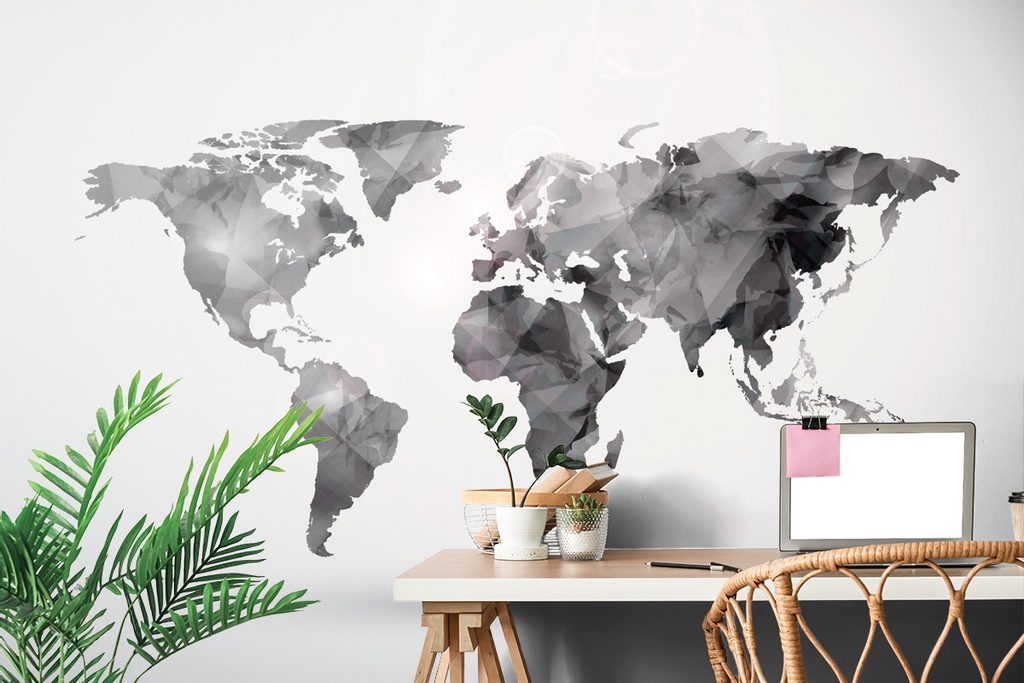 Originální samolepící tapeta moderní mapa světa v černobílém provedení
