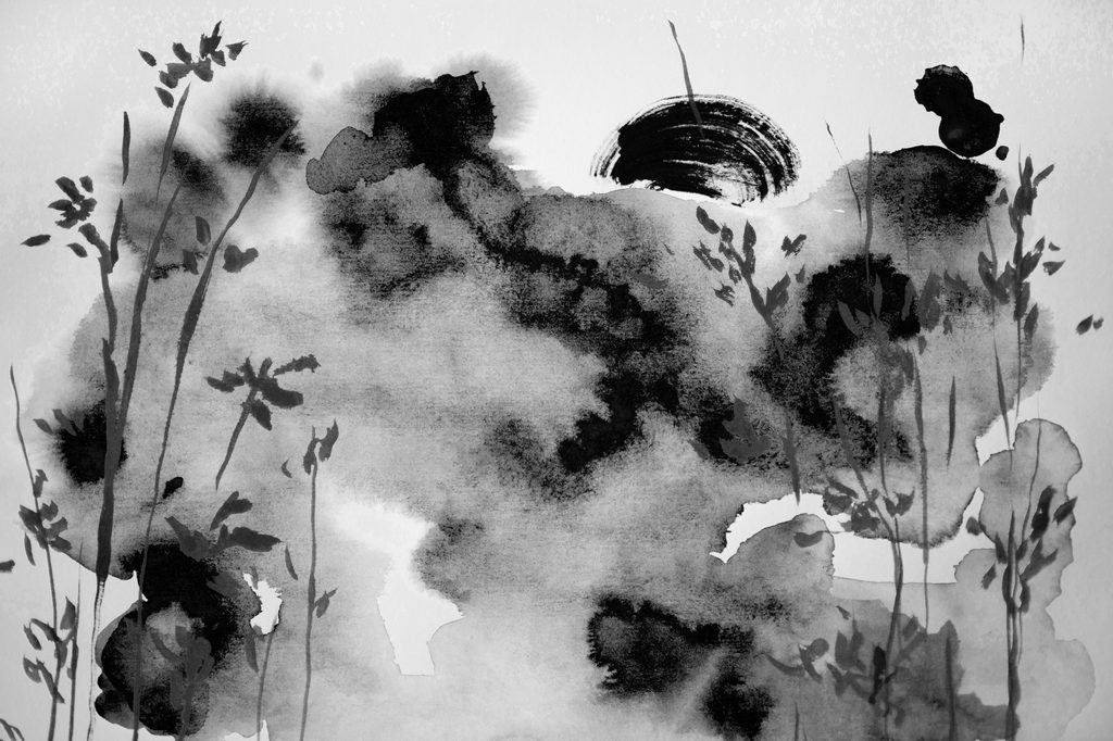 Tapeta černobílá obloha v akvarelovém provedení