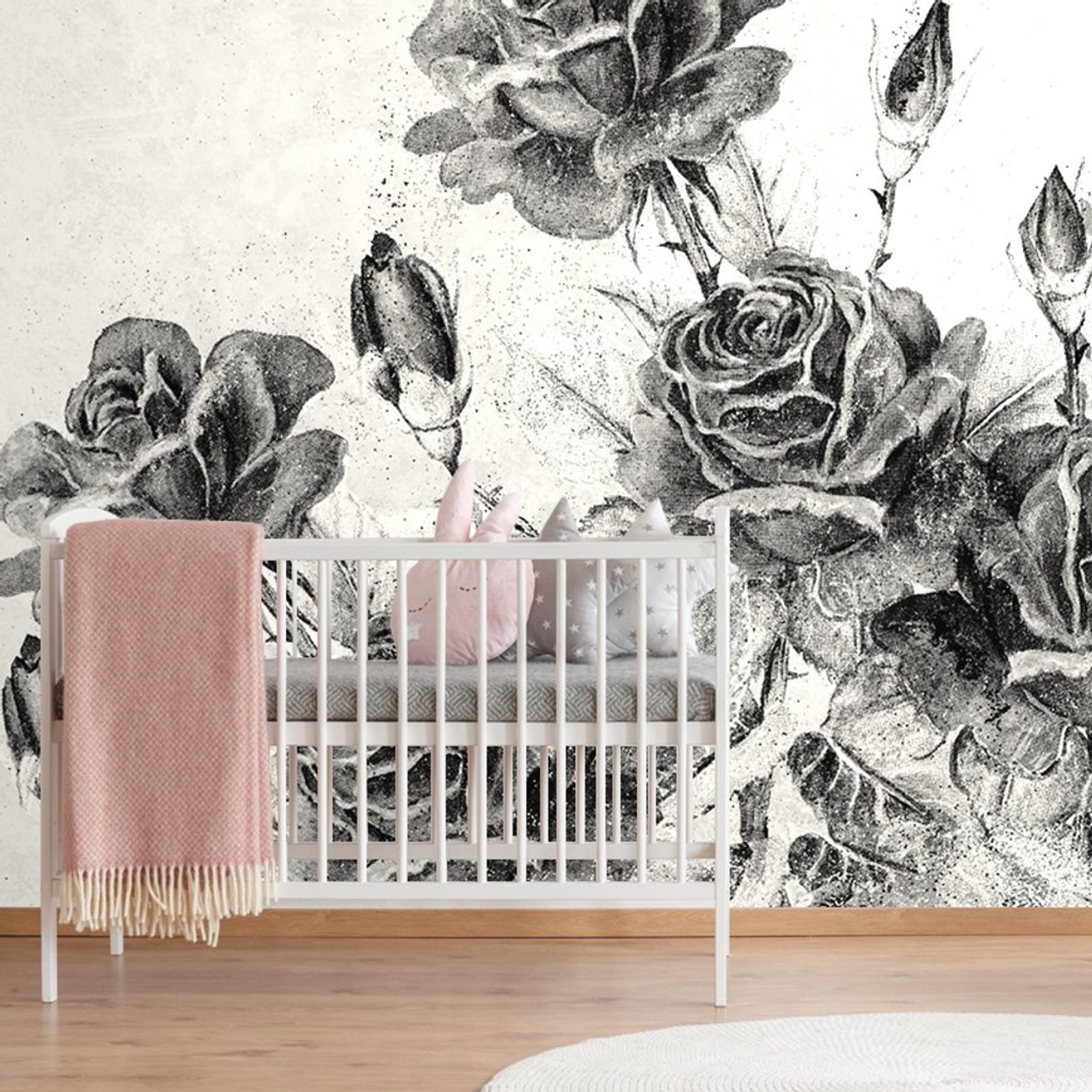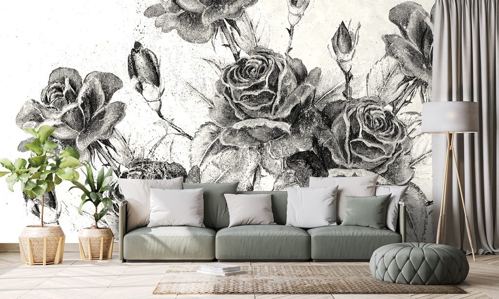 Tapeta černobílé růže ve vintage provedení