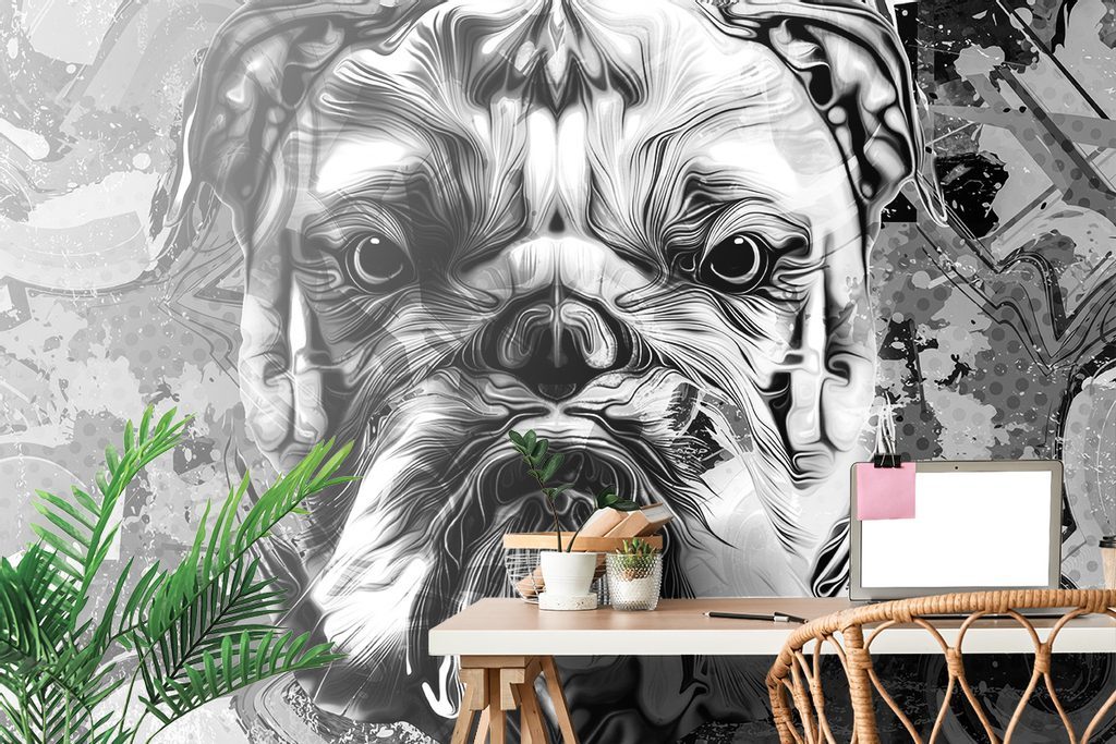Tapeta černobílý buldok v pop art provedení