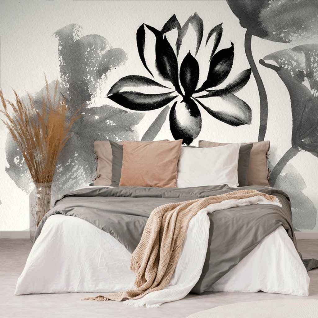 Tapeta černobílý lotosový květ v akvarelovém provedení
