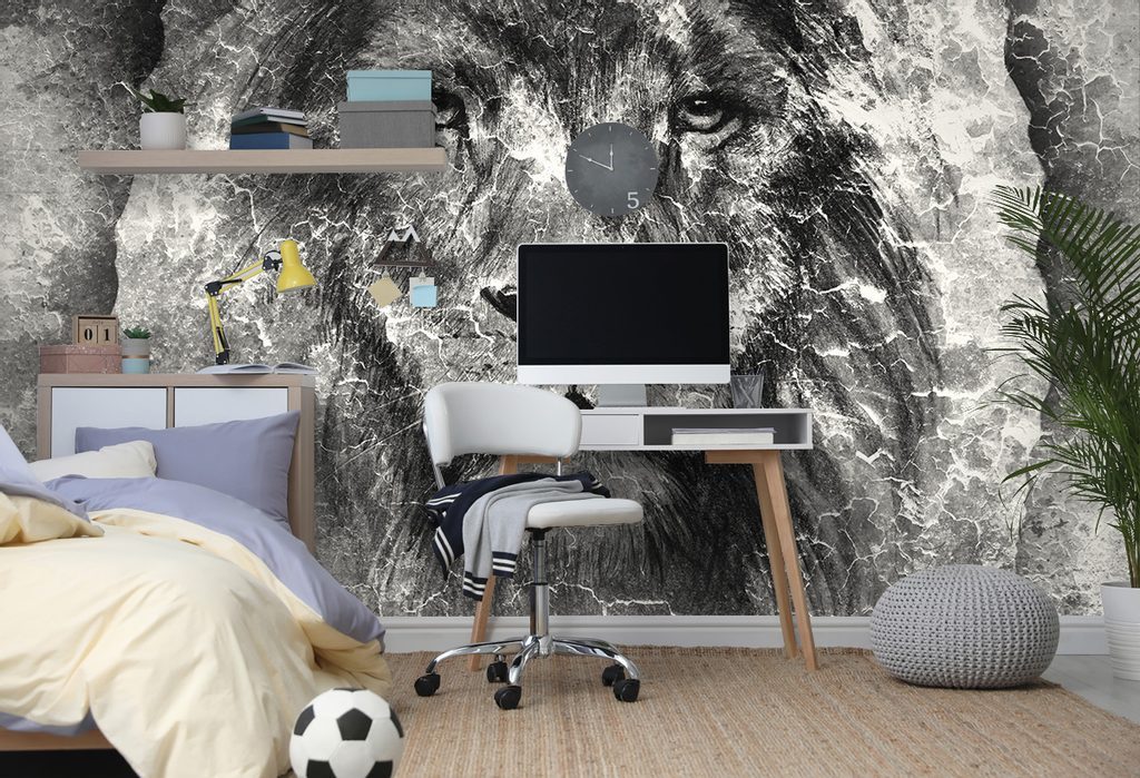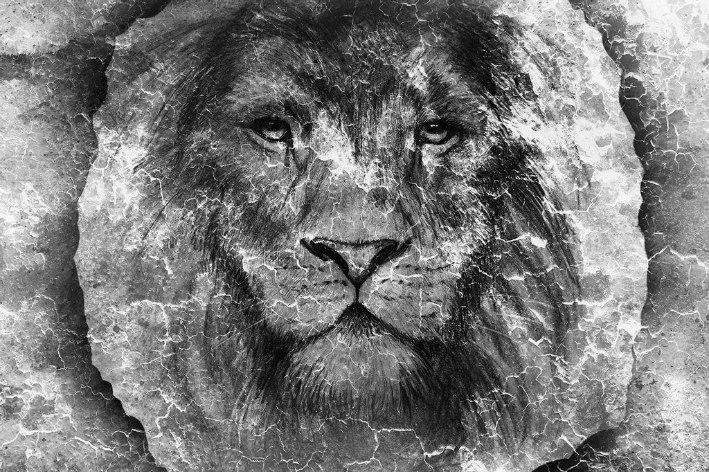 Tapeta černobílý pohled lva
