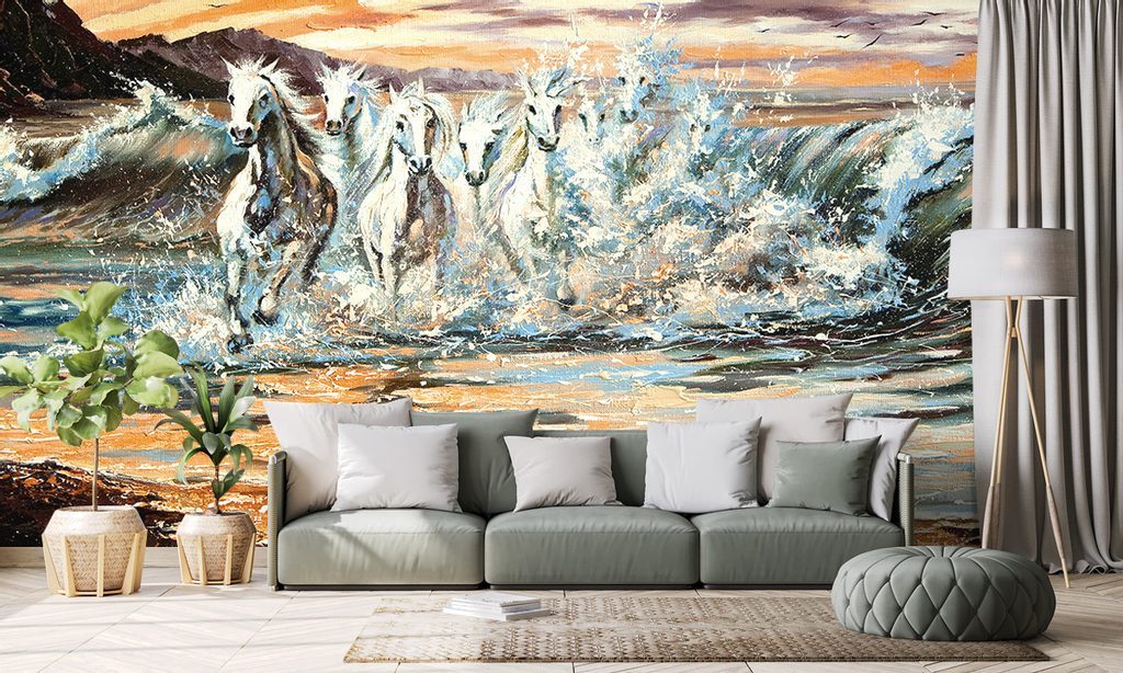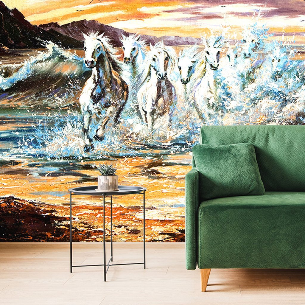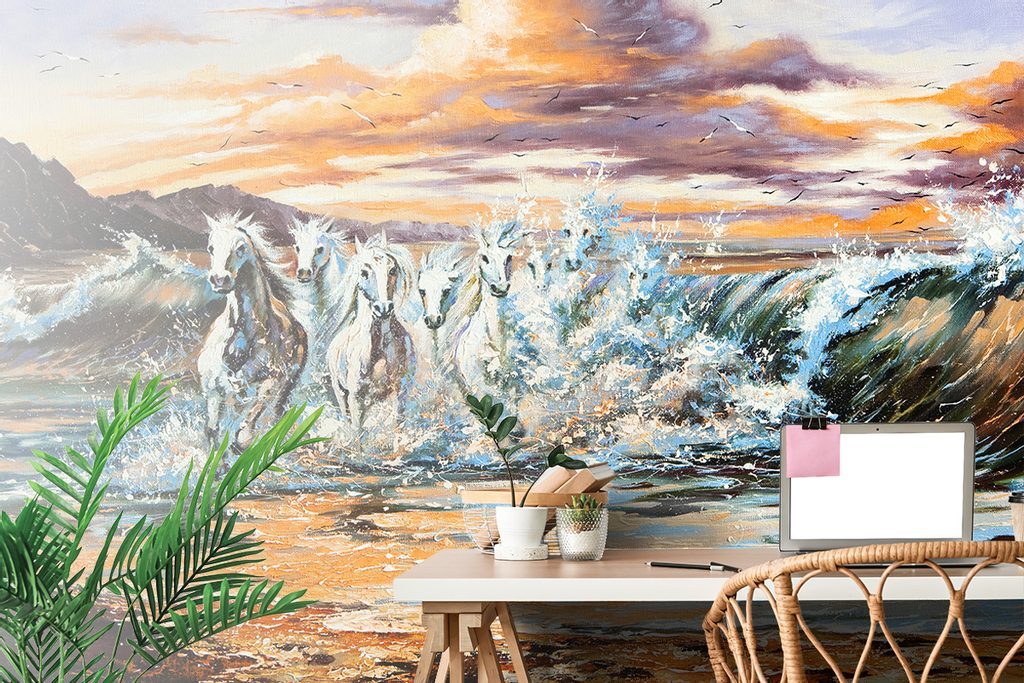 Tapeta cválající koně na pobřeží