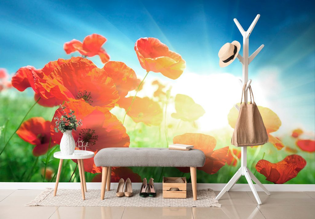 Tapeta divoký mák s paprsky slunce